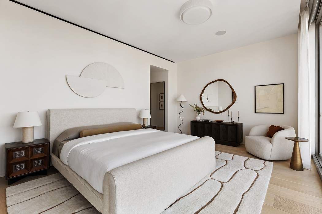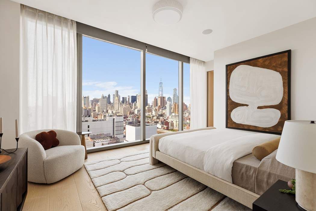 Welcome to unit 28E — an extraordinary full-floor, column-free three-bedroom residence at 215 Chrystie Street. An iconic building born from the visionary conceptualization of Ian Schrager, with architecture by Pritzker Prize-winning firm Herzog & de Meuron, and interiors by renowned designer John Pawson. This rare offering soars above Manhattan’s Lower East Side and boasts an awe-inspiring 270-degree panorama view from the 28th floor, with floor-to-ceiling and sound-rated operable windows, and uninterrupted glass corners. This home delivers a masterful balance of modern elegance and refined minimalism with 10-foot ceilings, wide-open sightlines, and an airy, loft-like feel throughout. Anchoring the residence is an expansive 42’ x 19’ great room, framed by sweeping views and enriched by a warm walnut feature wall, which flows seamlessly into a state-of-the-art open kitchen. The kitchen is an architectural statement in itself, outfitted with custom walnut cabinetry, honed Basaltina stone countertops, and an elite selection of chef-grade appliances: a Wolf oven, Miele five-burner gas cooktop, warming drawer, wine fridge, dishwasher, and built-in espresso machine. The primary suite is a true sanctuary, offering staggering South and West exposures, a spacious dressing room, and a serene, windowed five-fixture bathroom. Highlights include a custom floating tub, oversized glass shower, double vanity, and refined stonework throughout—creating a spa-caliber retreat with world-class views. The second bedroom impresses with its northern exposure and open vistas of Midtown’s architectural icons—including the Empire State Building, Chrysler Building, and MetLife Tower—while the third bedroom provides exceptional versatility. Designed with a handsome walnut pocket door, it functions effortlessly as a media room, home office, or guest suite. As a resident of 215 Chrystie Street, you’ll enjoy white-glove services including a private entrance, 24-hour doorman, on-site storage, and privileged access to all PUBLIC Hotel amenities—from the fitness center to the rooftop bar, curated dining, and social spaces. Perfectly positioned in the heart of Manhattan’s Bowery district, this residence offers effortless access to Nolita, SoHo, NoHo, and Greenwich Village, placing you moments from fine dining restaurants, boutique shopping, acclaimed art galleries, and renowned museums.