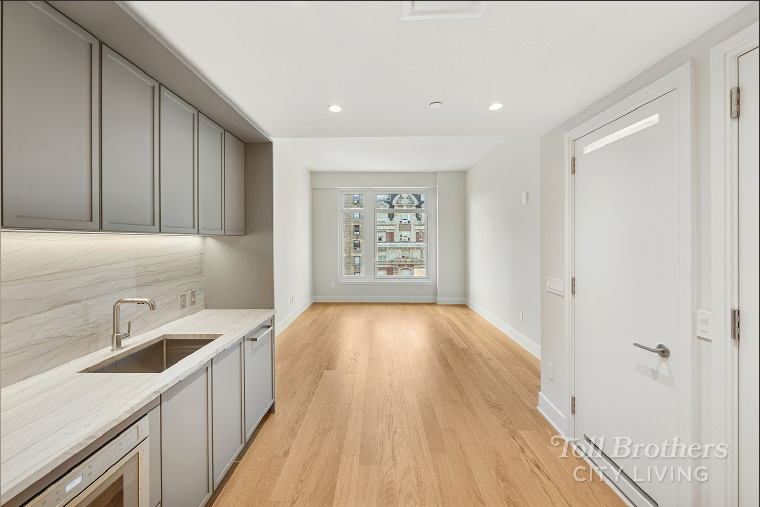 The Rockwell’s thoughtfully curated amenities include a fitness center, residents’ lounge, bookable dining room with catering kitchen, landscaped terrace, children’s playroom, pet wash, music room, screening room, bike storage, and a spectacular roof terrace with grills. Private storage is available for purchase. The Rockwell will have a 24-hour attended lobby and a full building staff.