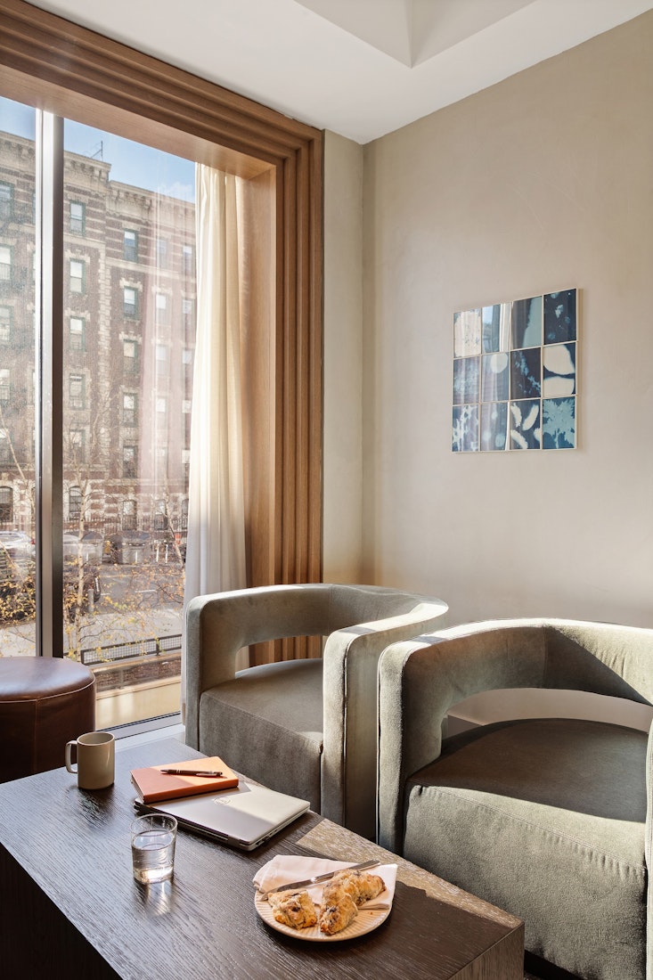 Vandewater's interior design speaks to an old school design approach and showcases the beauty of the materials in a new and thoughtful way - oversized, high performance casement windows, tall ceilings, and European white oak floors. Elegant kitchens offer honed Perla Venata kitchen counters, chef caliber Miele appliances and custom, craftsman inspired oak cabinetry with pewter hardware. Primary bathrooms are outfitted with honed Windsor Cream marble, soaking tub, large shower with frameless glass enclosure, pewter fixtures, and custom oak and travertine vanities. All homes have the latest hvac technology from Climatemaster, laundry equipment from Whirlpool or GE, and recessed LED lighting. All residences have remarkable light, garden views and dramatic city vistas from the top third of the building. Preserved views in every direction allow for virtually no obstructions past the 20th floor, providing views of the George Washington Bridge, Hudson River, Central Park, downtown Manhattan and beyond. Select residences have outdoor terraces.