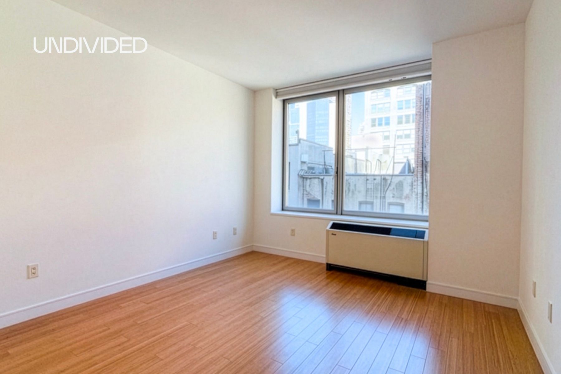 Residence 6F at 303 East 33rd Street offers approximately 874 square feet of modern, corner living with bright, north and east exposures. It is a one bedroom plus den, which can also be used as a home office. The eco-friendly bamboo flooring throughout adds warmth while the bright white finishes sets a modern tone. It has an open kitchen with a large island and custom bamboo cabinets. State of the art appliances include Bosch dishwasher, oven and cook top, and Liebherr Refrigerator. The spa-like bathroom has Bianco Dolomiti white marble walls, quartzite floors and glass wall tiles in the bath/shower. The custom bamboo vanity has extra storage features. The apartment also has a Bosch washer and dryer. The large bedroom has a walk-in-closet.