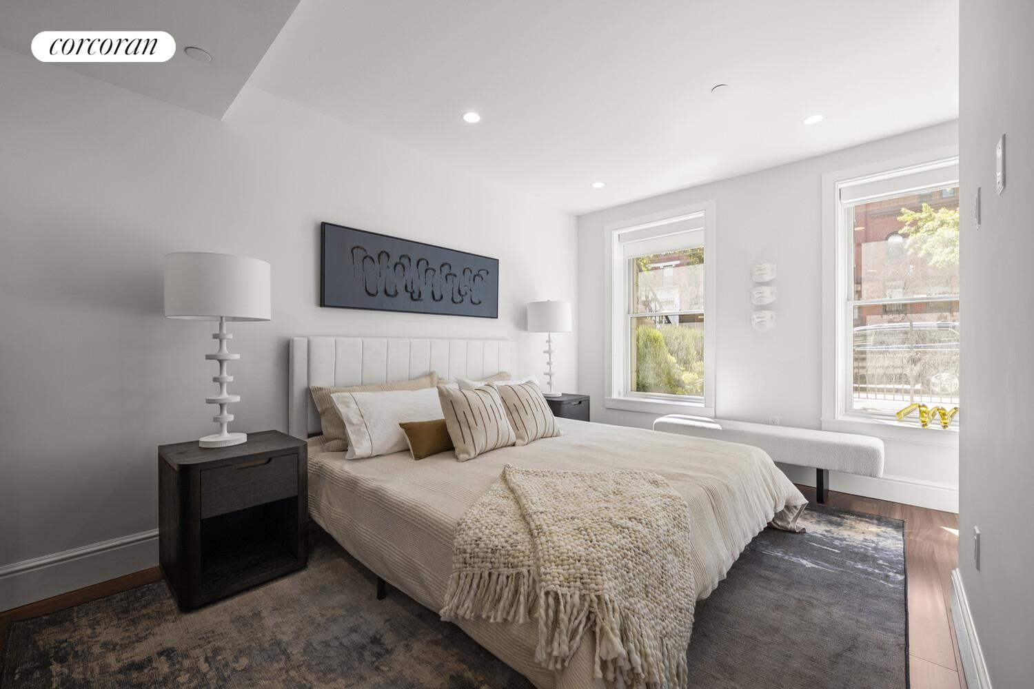 Welcome to Residence One at 569 St. Marks Avenue-a stunning 2-bedroom, 2-bathroom home where soaring ceilings and dramatic double-height windows bathe the space in sunlight. Thoughtful touches like remote-controlled blinds and an in-unit washer/dryer elevate everyday comfort, while an expansive 800+ square foot private backyard transforms city living into your own personal retreat. Completely renovated and move-in ready, this is Brooklyn living at its brightest.