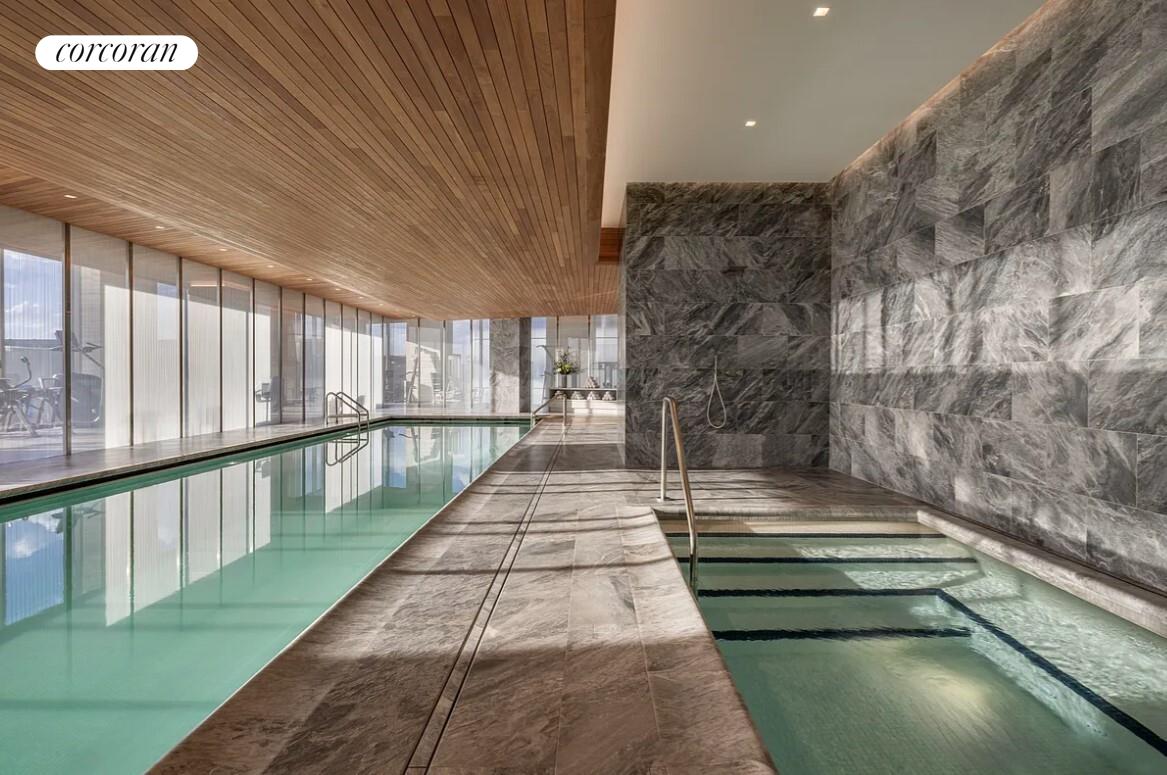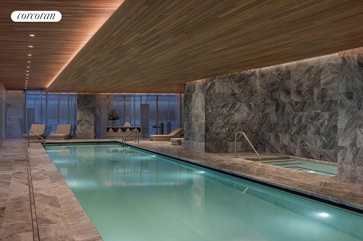 Residents of One High Line enjoy private residential lobbies for each tower, accessed via a dramatic porte-cochère. Amenities include a 75-foot lap pool and jacuzzi, full-service spa with sauna, steam, and treatment rooms, a fitness center with private training studios, golf simulator and virtual gaming lounge, children's playroom, private dining room, and a games lounge. Five-star services are provided by the Faena Hotel, located in the East Tower. On-site parking and private storage are available for purchase.