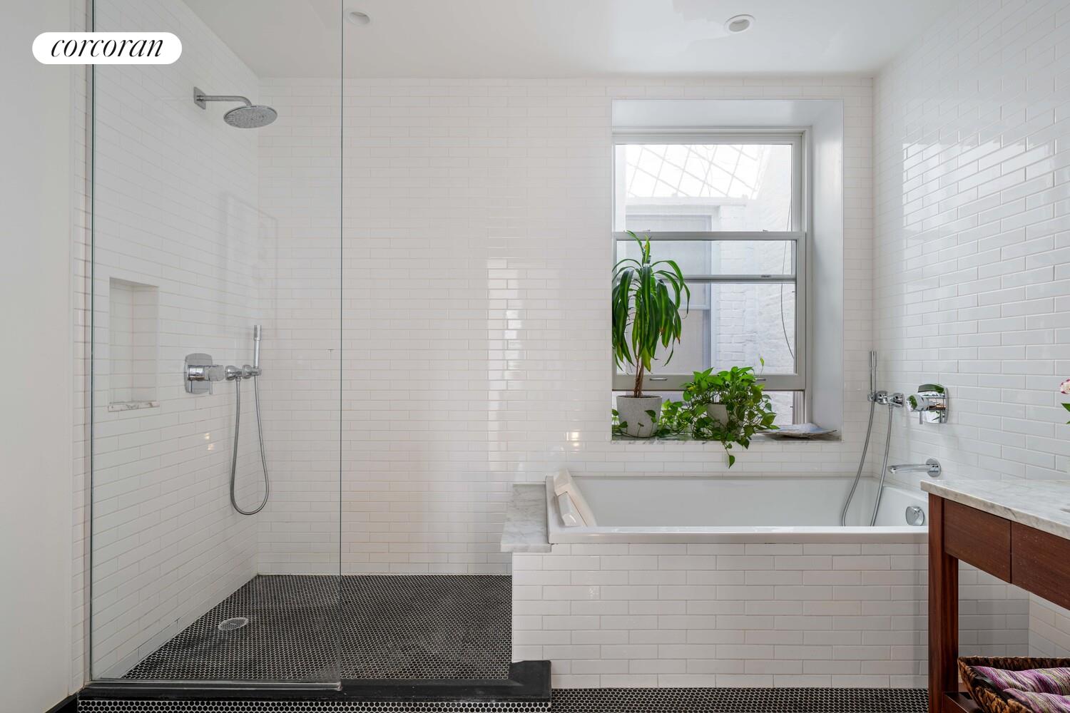Traveling upstairs, you'll find three wellproportioned and a bonus family room perfect for another bedroom, office, playroom or an intimate media lounge. The primary suite is a serene retreat in itself - expansive in scale featuring a spa like ensuite bathroom with oversized shower and a bath tub with a magical light well for the needed zen moments to wipe away the stress of everyday life. The primary suite continues with an incredible full width sun room and sitting area with a wall of windows looking out onto the treetops of Prospect Park, and of course, a generous walk in closet of your dreams. The two nicely sized front bedrooms share a lovely common full bath.