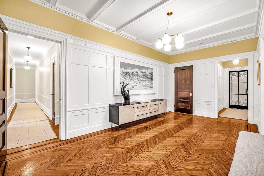 Residence 4C is a rare offering: an expansive, 3,536-square-foot home filled with beautifully preserved and restored original details. These include ornate coffered ceilings, decorative plasterwork, intricate moldings, solid wood pocket doors, inlaid hardwood floors, and original wood-paneled living and dining rooms—each with a decorative fireplace. Oversized west-facing windows frame breathtaking views of Riverside Park and the Hudson River.