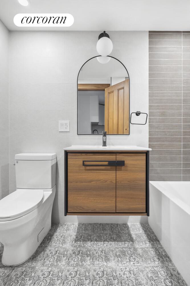 The living and dining rooms come complete with original ceiling medallions and decorative details, brand new barrel windows topped with stained glass, original floor-to ceiling mirrors with carved wood frames, and stylish pendant lighting. This level has its own convenient half bath, as well.