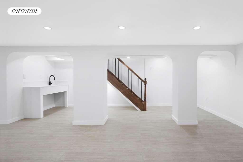 The main house also has a fully finished, tiled basement with its own wet bar, full bathroom, and stylized arches. This level provides space for a home office, gym, or dedicated yoga room, and has stairs leading directly to the garden.