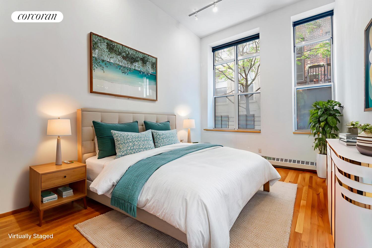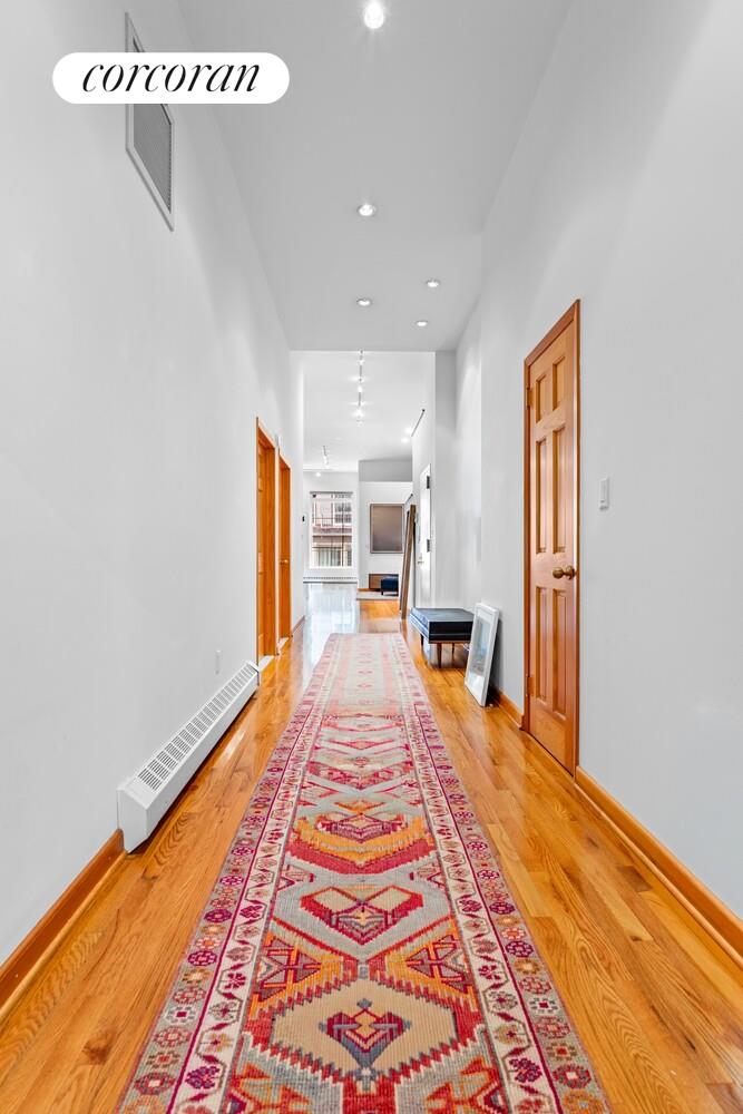 Additional highlights include beautiful hardwood floors throughout, a dedicated laundry room with LG washer/dryer, and baseboard heating paired with zoned central air. Track and recessed lighting complement the industrial loft aesthetic, while modern systems ensure comfort year-round.