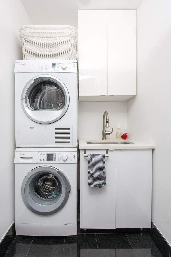 The third bedroom faces the courtyard and features an en-suite bathroom, a laundry closet, a full closet, and an additional linen/storage space.