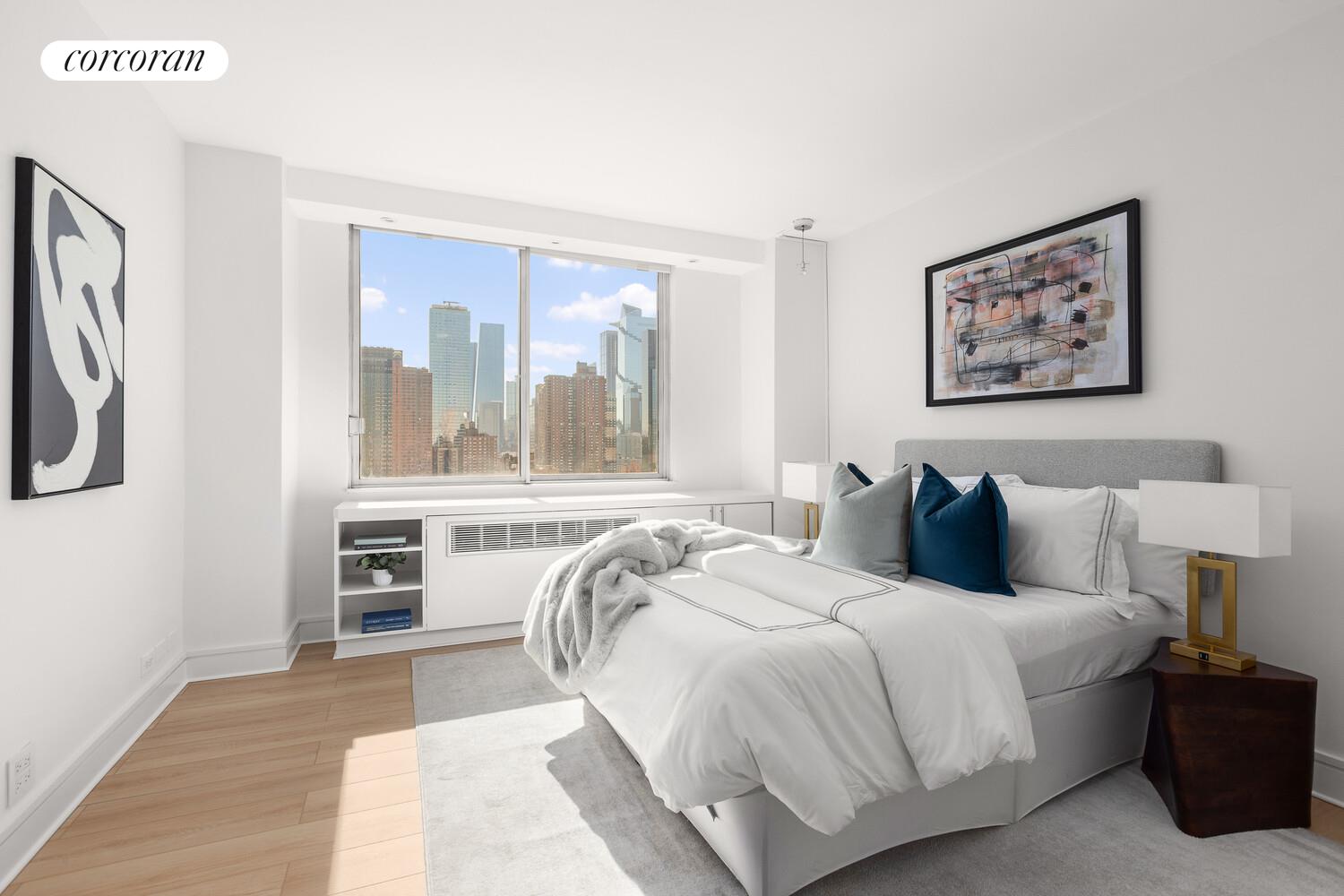Residents of 2 Worldwide Plaza enjoy full-service living with a 24-hour doorman, concierge, fitness center, and a beautifully landscaped courtyard with a café, creating an urban oasis in the heart of Manhattan.