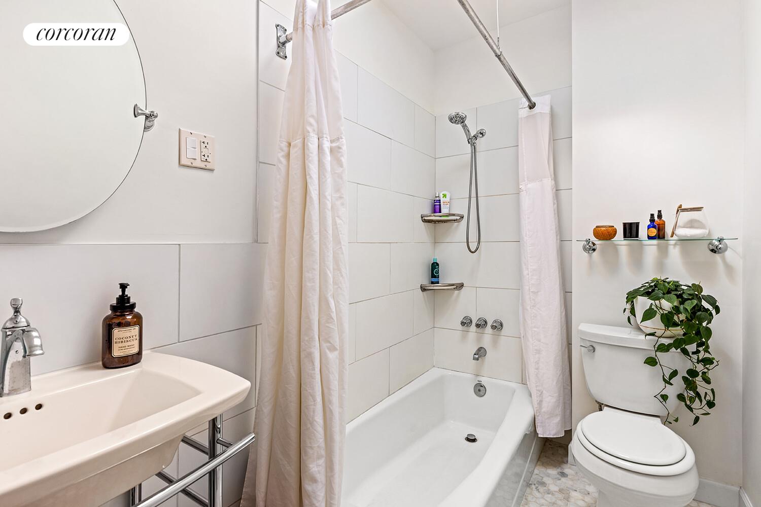 The renovated eat-in kitchen is both stylish and functional, featuring updated appliances, butcher block countertops, and a farmhouse sink. A rear door opens to a serene, country-sized backyard and garden - your own private retreat, perfect for summer barbecues or relaxing after a long day.