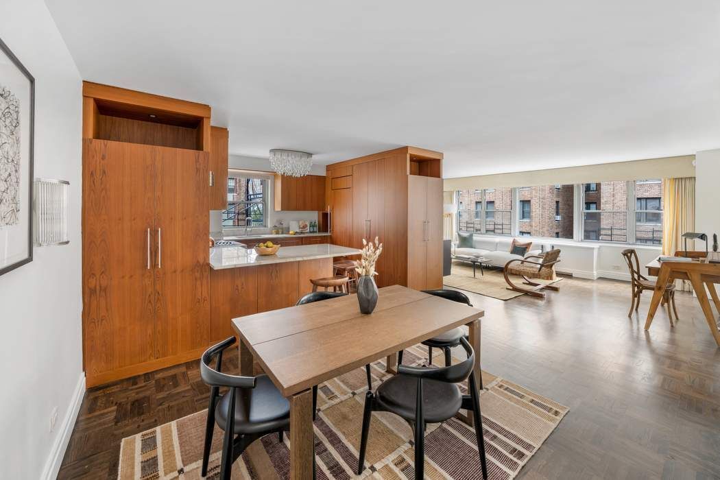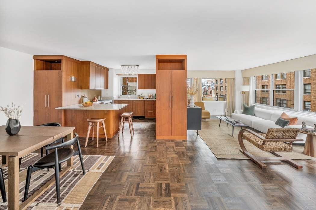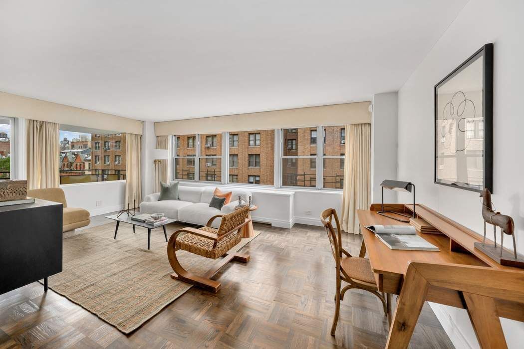 Residence 7C at Mayfair Towers is a prized northwest-corner two-bedroom, two-bath cooperative with a private balcony and an effortless indoor-outdoor flow. Framed by a wall of windows that capture open city and townhouse vistas, this sun-splashed home is tailor-made for both gracious entertaining and quiet retreat. A wide entry foyer—flanked by extra-deep closets—sets a welcoming tone and hints at the abundant storage found throughout the apartment. Beyond, an impressive 35-foot living and dining expanse invites large gatherings; custom built-ins, integrated display shelving, and pocket doors lend refined functionality. Adjacent to this space, a windowed den wrapped in north- and west-facing glass opens to a private balcony overlooking a picturesque row of historic Henry Hardenbergh townhouses on West 73rd Street. The oversized, windowed kitchen was reimagined for the serious cook and is outfitted with a Viking six-burner range, Sub-Zero refrigerator, abundant cabinetry that rises to the ceiling, and a wine refrigerator nestled beneath a convenient breakfast bar. The home’s split-bedroom layout enhances privacy, placing the corner primary suite—complete with a walk-in closet and en-suite marble bath—on one side of the apartment, and the secondary bedroom and full bath on the other. The second bedroom has a professionally sound-insulated wall, making it ideal for music, remote work, or restful sleep. Mayfair Towers is one of Central Park West’s premier white-glove cooperatives, offering a 24-hour doorman and concierge, on-site valet with tailor, garage with Zipcar access, state-of-the-art fitness center, private children’s playground, bike and luggage storage, and a beautifully landscaped roof deck with sweeping views of Central Park—perfect for summer fireworks. Air-conditioning and gas are included in the monthly maintenance, and the building welcomes pets and pied-à-terres. Perfectly located at the corner of Central Park West and 72nd Street, Mayfair Towers offers immediate access to the park, Lincoln Center, the boutiques of Columbus Avenue, celebrated dining, and excellent transportation.