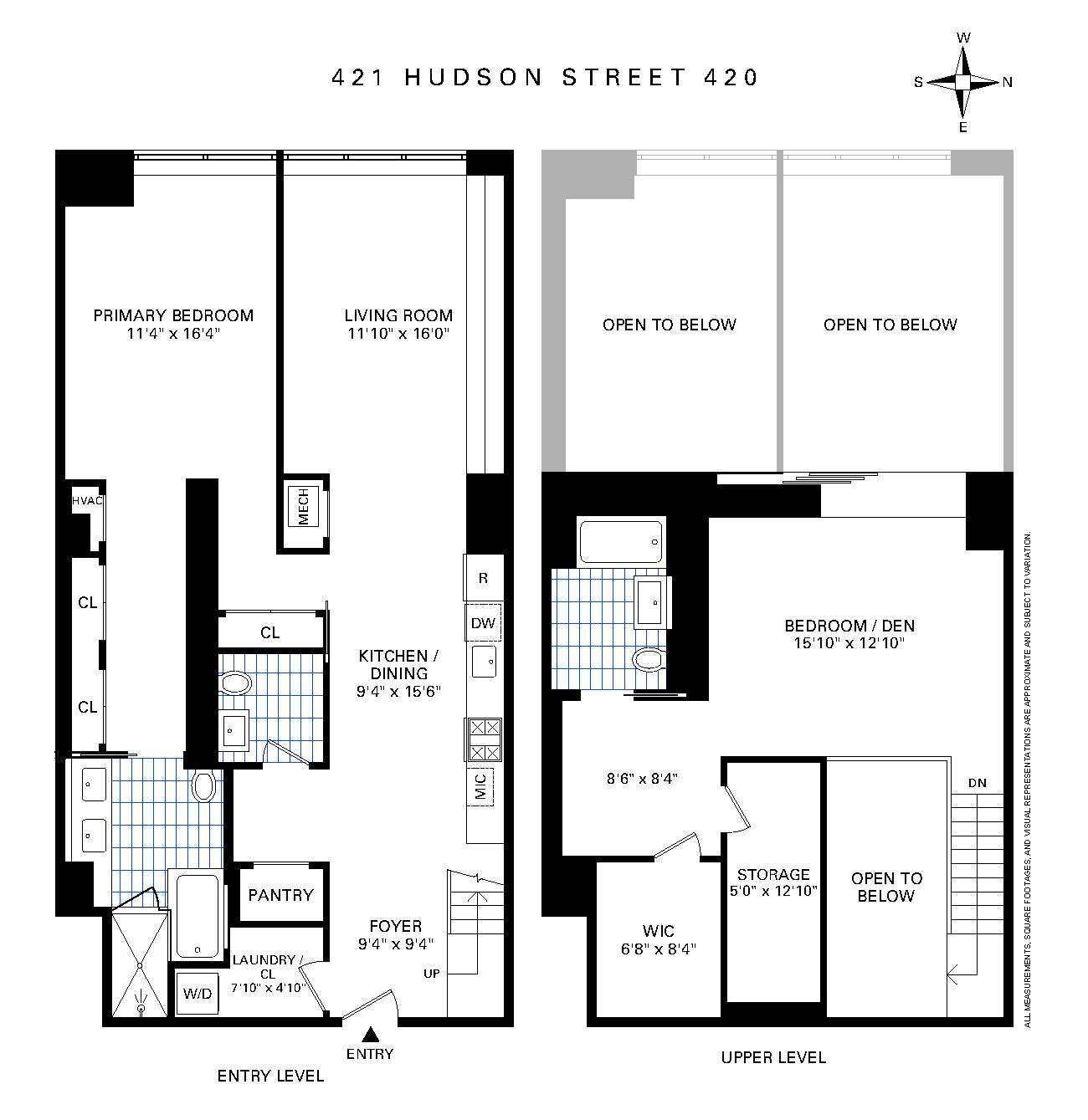 Enter upstairs via the sculptural, gunmetal staircase that leads to an expansive and versatile mezzanine loft with a fully customized rift white oak walk-in closet featuring integrated LED mirror and bespoke cabinetry. The expansive space boosts a second bedroom/den complete with a beautifully appointed full bath featuring Ann Sacks Calacatta marble finishes. For added convenience, the loft provides an additional area suitable for a home office or seating space.