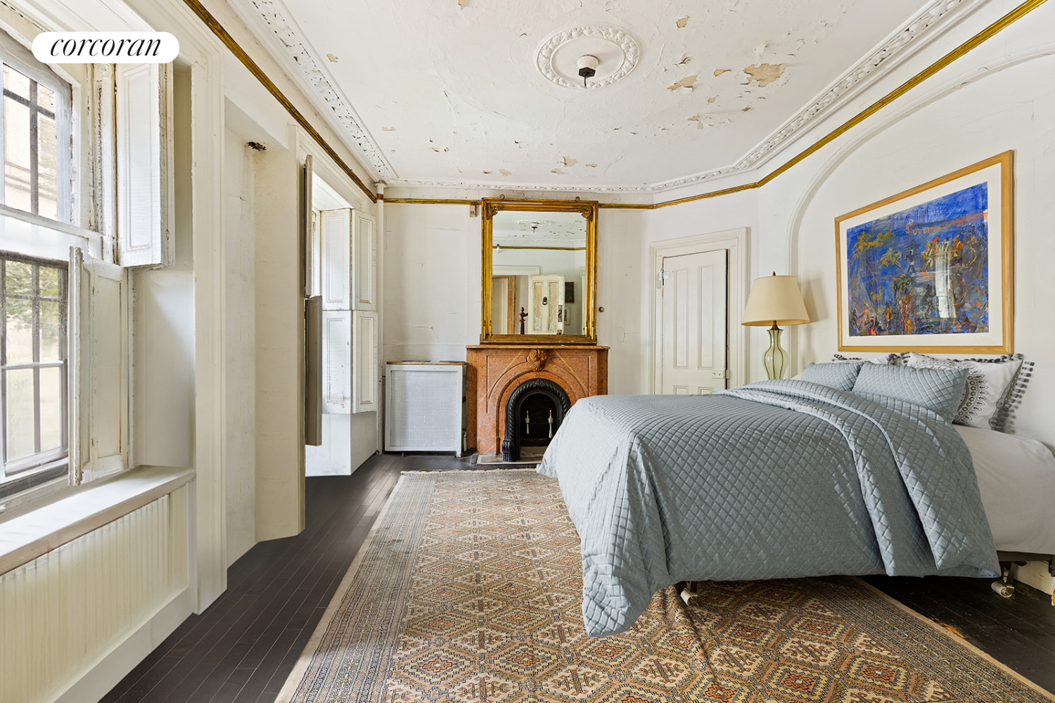 While the townhouse is rich in historical details, including six decorative fireplaces, it requires restoration and renovation, offering a blank canvas for customization. The windowed kitchen and private roof access add to the allure, presenting opportunities for modern upgrades and personalized touches.