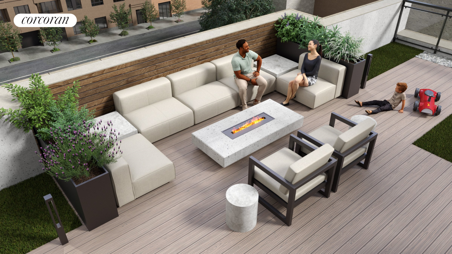 Rooftop terrace - Features a custom chef-grade outdoor kitchen with BBQ grill and dining area. Rooftop outdoor movie lounge - Equipped with an exterior projection screen by draper and furnished with west elm designer furniture.