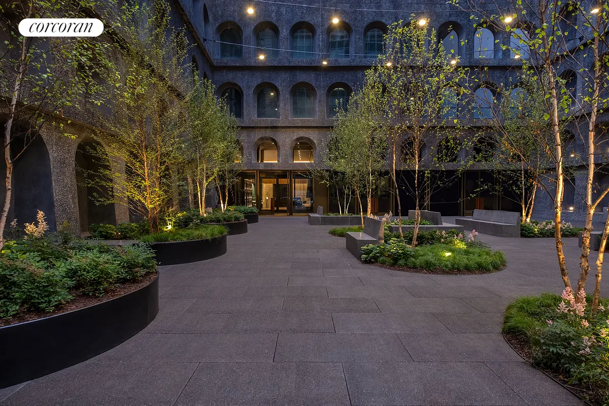 Residence 43C is a corner three bedroom, three bathroom home with approximately 10 foot ceilings and oversized arched windows with elegant bronze detailing framing expansive New York City skyline views. Interior finishes include wide-plank white oak flooring and oil rubbed bronze fixtures custom designed by Sir David Adjaye. The residence boasts an open kitchen with custom Pedini Italian textured blackened oak cabinetry, Salvatori Pietra Cardosa marble countertops and backsplash hand-selected from the Apuan Alps in Tuscany with a Salvatori Nero Marquina cantilever providing additional seating, and state-of-the-art appliances by Gaggenau, Bosch, and Thermador, including wine storage. The corner primary bedroom suite has a generous windowed walk-in closet and a luxuriously appointed windowed bathroom with textured Italian Bianco Carrara marble, a custom Pedini Italian millwork double vanity, an expansive shower and 6-foot soaking tub, and radiant heated floors. There are two generous secondary bathrooms in the residence with custom Pedini Italian millwork vanities, one complete with Salvatori Grigio Versilia marble throughout and a soaking tub, the other with Salvatori Bianco Carrara marble throughout and an expansive shower.