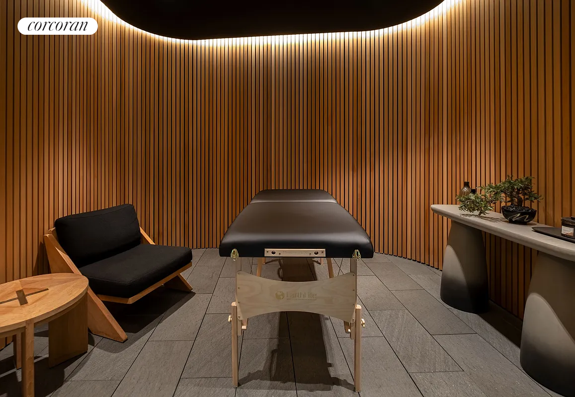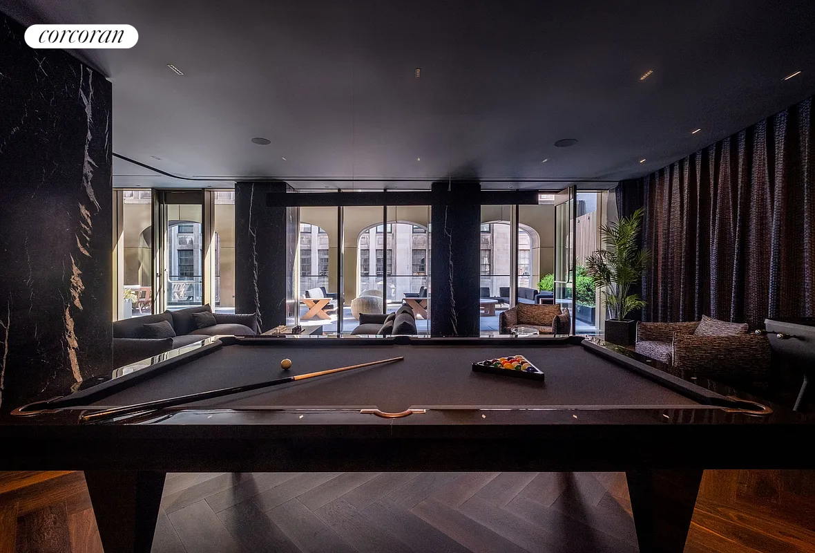 130 William boasts a thoughtful and comprehensive suite of over 20,000 square feet amenities that complements an energetic city lifestyle. Amenities include an infinity-edge spa pool, thermal pool, cold plunge pool, rain shower, dry sauna, massage room, state-of-the-art fitness center, yoga studio, basketball court, indoor and outdoor lounges with a chef's catering kitchen and private dining room, club room, game room, IMAX Private Theatre, golf simulator, and a large-scale children's activity center.