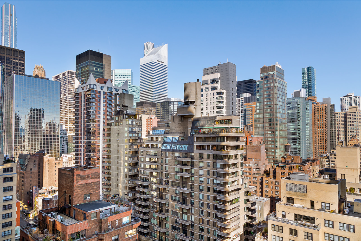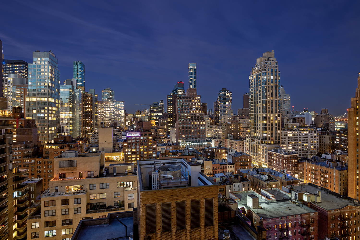 The E-line at 100 United Nations Plaza on the 20th floor is coveted for its open northern and southern panoramas. From the sun-drenched great room enjoy entertaining and dining with open views of the iconic southern skyline. The apartment's generously-proportioned living space is nearly 30-feet long, boasts floor-to-ceiling windows with sliding doors, and provides seating arrangement flexibility with room for dining for 10 or more. The renovated windowed kitchen has a western exposure, granite countertops and backsplash, custom wood cabinets, recessed lighting, and stainless-steel appliances from Sub Zero, Bosch, Miele, and GE.
