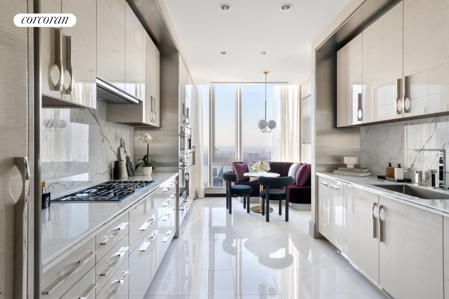Reside over 550' above New York City in this residence at Central Park Tower. This gracious three-bedroom, three-and one-half bathroom home offers over 3,000 square feet of luxury living space. The formal entry foyer and gallery lead to an expansive great room featuring both north and west facing views. The gourmet kitchen features custom cabinetry by Smallbone of Devizes and premium Miele appliances. Soaring ceiling heights of 10'7" and floor-to-ceiling windows spanning the entire residence allow for an abundance of natural light throughout the home.