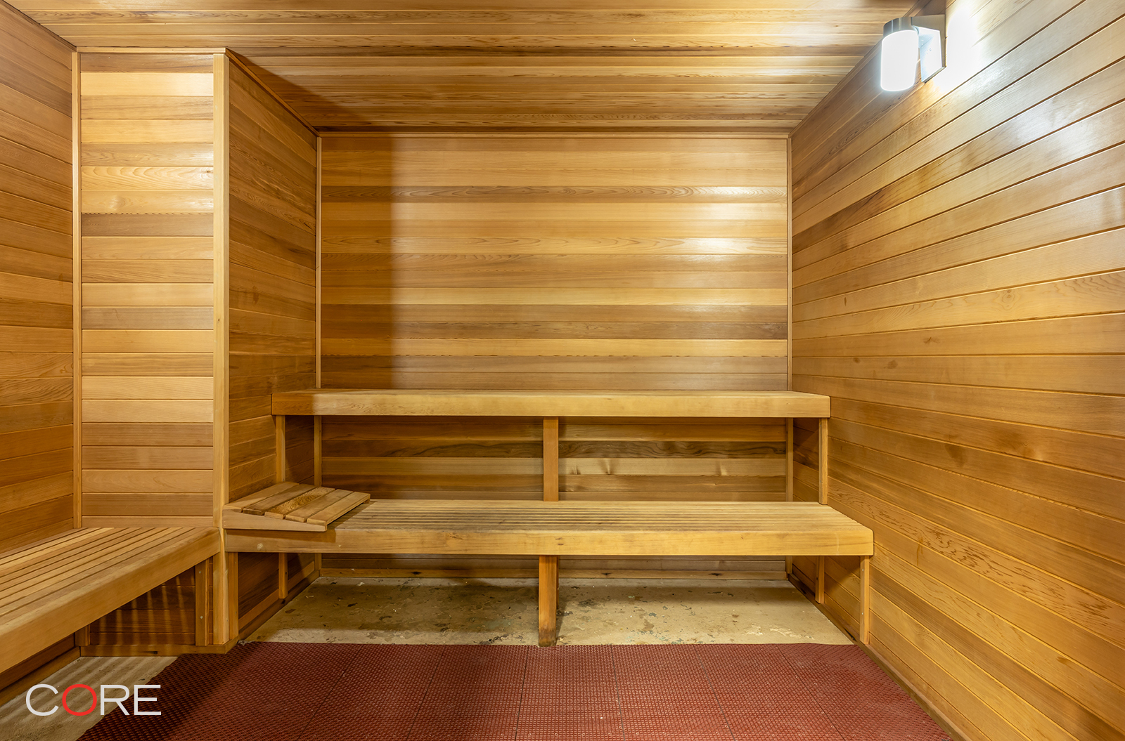 The chef’s kitchen has granite countertops, a four-burner gas stove (gas included in the monthly maintenance), an over-range microwave, stainless steel dishwasher, and custom cabinetry, including overhead storage and a built-in pantry.