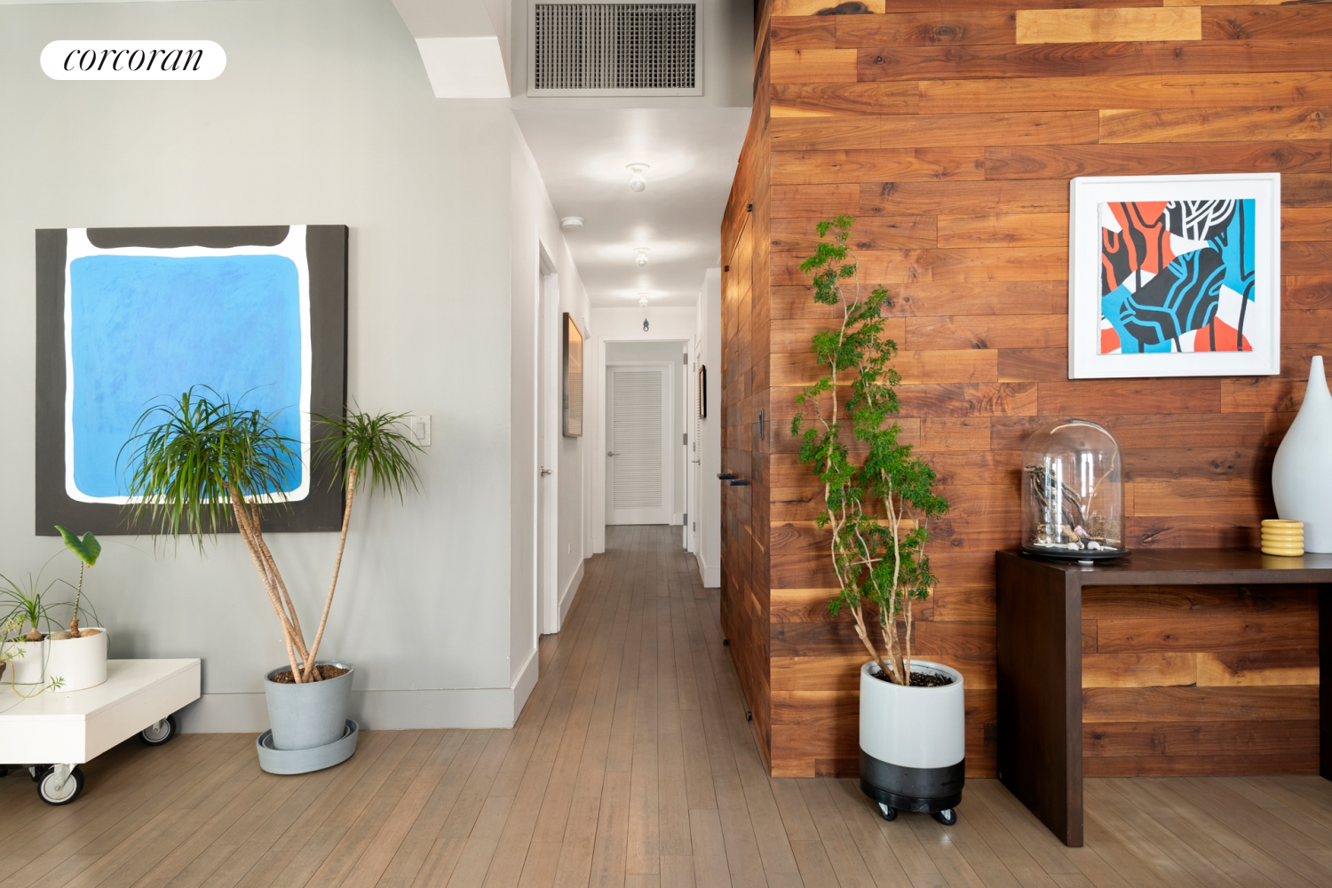 Head to the palatial owner's suite to explore an oversized bedroom with a built-in desk and two massive walk-in closets. The magazine-worthy bathroom offers a handsome wood double vanity flanked by a freestanding soaking tub, two-stage commode and frameless glass shower. Exceptional tilework and contemporary fixtures add a designer touch to the spa-like retreat. The secondary bedrooms feature ingenious lofted beds and desk areas divided by a smart sliding wall, allowing the space to be opened or separated at will. Across the hall, the oversized guest bathroom is finished with designer tile, a double vanity and an extra-large walk-in shower. Central HVAC and an in-unit washer-dryer add comfort and convenience to this move-in ready Downtown Manhattan sanctuary.