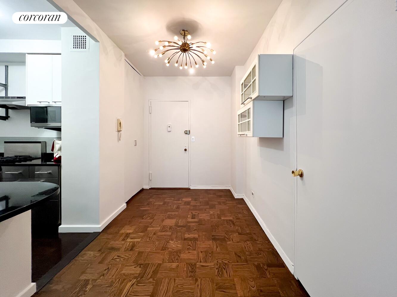 The layout offers a living area with great natural light through oversized windows,, a separate sleeping alcove with newly renovated en-suite bath, and two generous walk-in closets for exceptional storage - a rare find in Manhattan co-ops. The well-maintained renovated kitchen features efficient design, ideal for daily living or entertaining.
