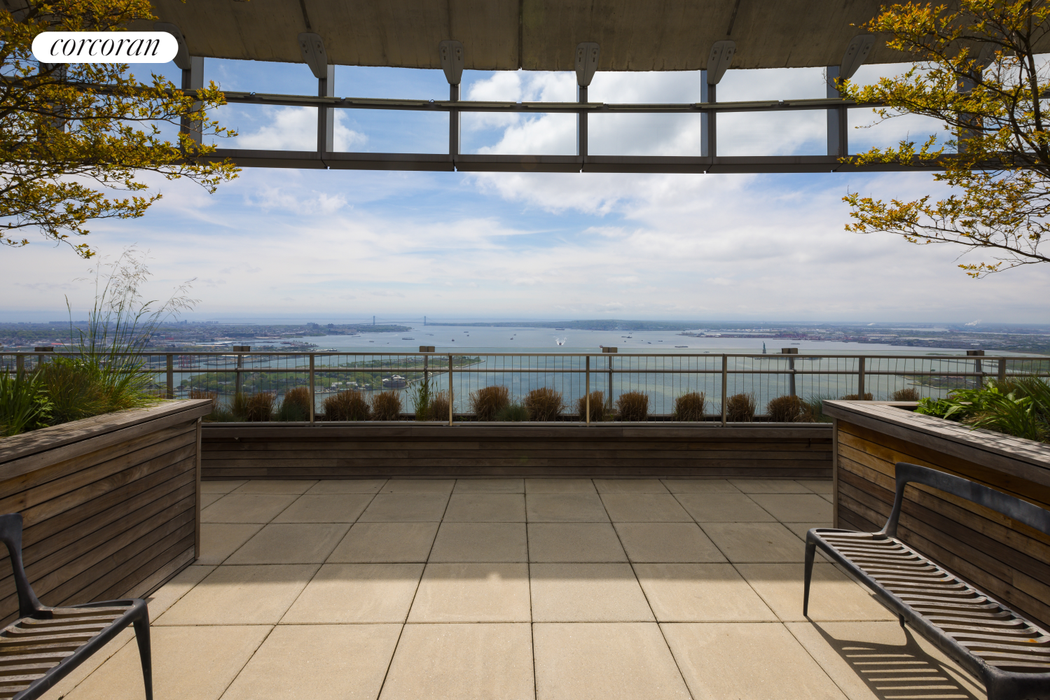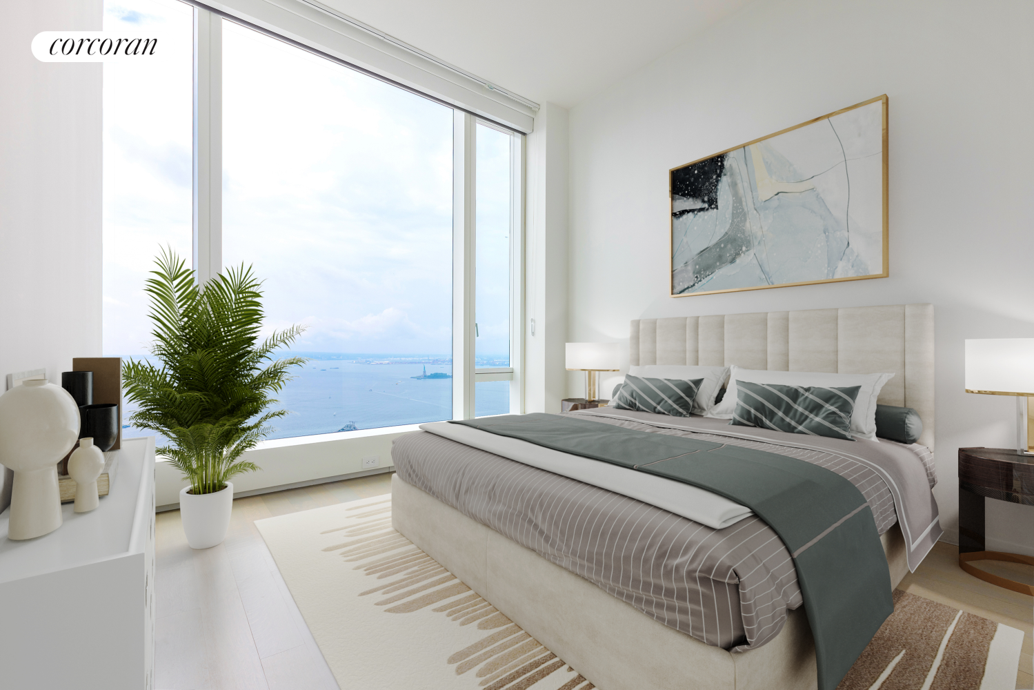 Beautiful home at 55 stories above ground with amazing open water view and view of Statue of Liberty. Eastern and Southern exposure of this spectacular home brings in tons of Sun light into the living space, this spacious 2BR/2.5 Bath home has walls of floor-to-ceiling windows and comes with mesmerizing panoramic water view. High end appliance and cabinetry, plus great closet space, also the selling price includes Storage Unit. Please note that photos with furniture are virtually staged.