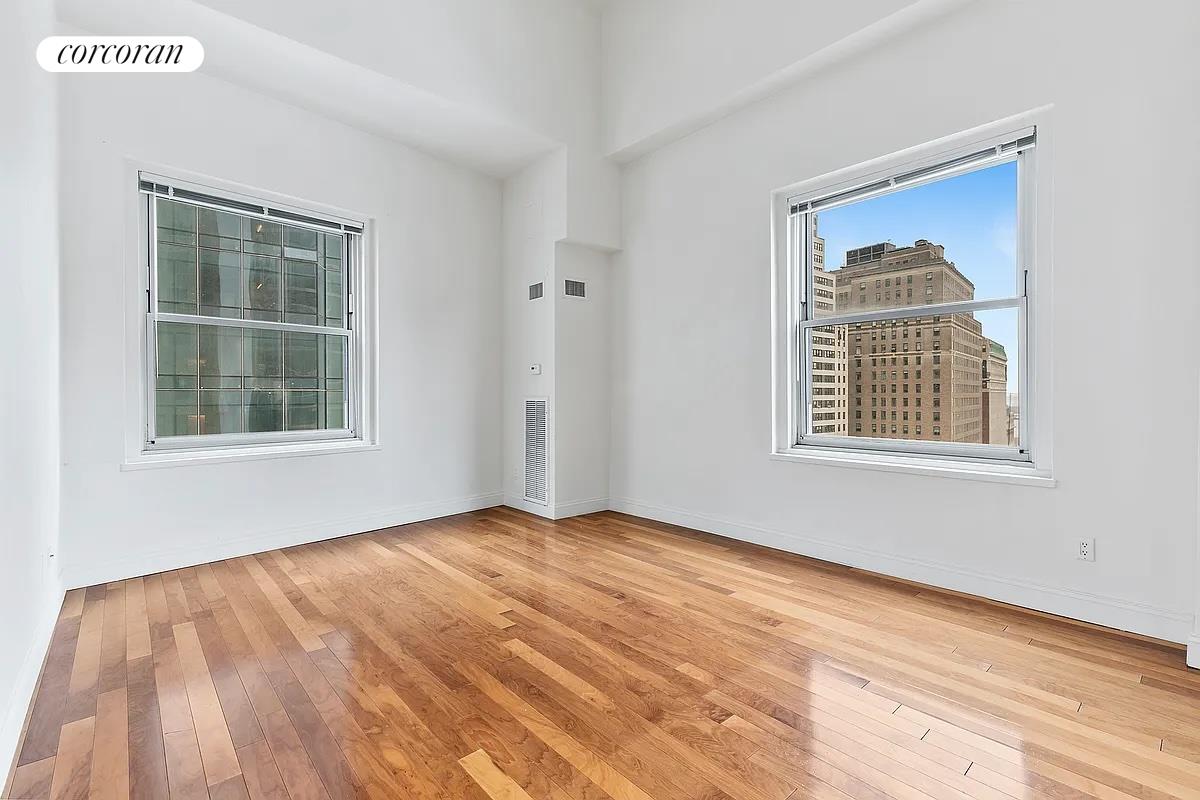 This corner one bedroom apartment with 16" ceilings throughout offers spectacular views of downtown New York and water views from oversized windows.The large entry foyer can be easily converted into an office area or sitting area, also featuring a spacious walk-in closet as you enter the apartment. The living area is adjacent to the windowed kitchen allowing a great flow while entertaining. The kitchen features a Subzero refrigerator, Viking range, two drawer Fisher Paykel dishwasher and microwave. The luxurious marble bath includes a deep soaking tub, rain shower and Kohler fixtures. The building features a state of the art gym & yoga facility, cold storage & valet services, laundry machines on every floor, Library, business center, live-in super, billiards lounge, bike room, doorman valet service, and landscaped Sky lounge.