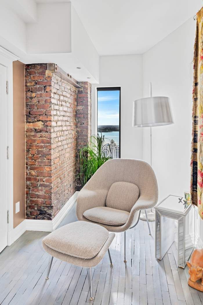 Opposite the primary bedroom, you'll find a generously sized office, a sitting area, and a cozy reading lounge. What better way to work or immerse yourself in a great book than with unparalleled views of the Brooklyn Piers and Downtown Manhattan?