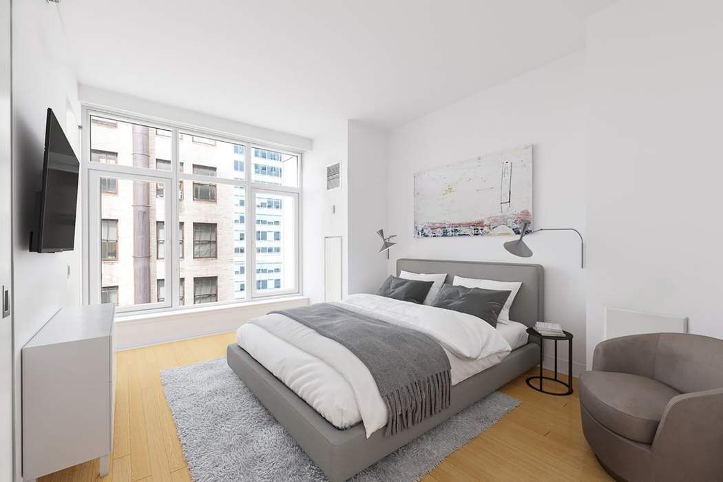 Rarely available full-floor home on the 12th Floor at Number 5 Condominium. This floor through two bedroom abode features high ceilings, oversized windows, hardwood floors, ample closet space and a washer and dryer in the unit. Revel in the luxury of having a key locked elevator that opens into your own private floor. The main living area features plenty of natural southern light from a dramatic wall of windows. The state-of-the-art Bulthaup kitchen boasts high-end appliances and is both functional and composed, making it perfect for living in and entertaining. Both luxurious bathrooms deliver a serene spa experience. 5 East 44th Street is the latest residential masterpiece in the Philip Johnson-Alan Ritchie Architects design collection. From the white metal clad facade to the luxurious boutique lobby, this condominium is a modern sculpture amidst the historic landmarks of Midtown Manhattan. Situated between Fifth and Madison Avenue and a stone’s throw from Grand Central Station with easy access to everything the city has to offer. $1,500 Move-In Deposit (refundable) $700 Processing Fee (non-refundable)