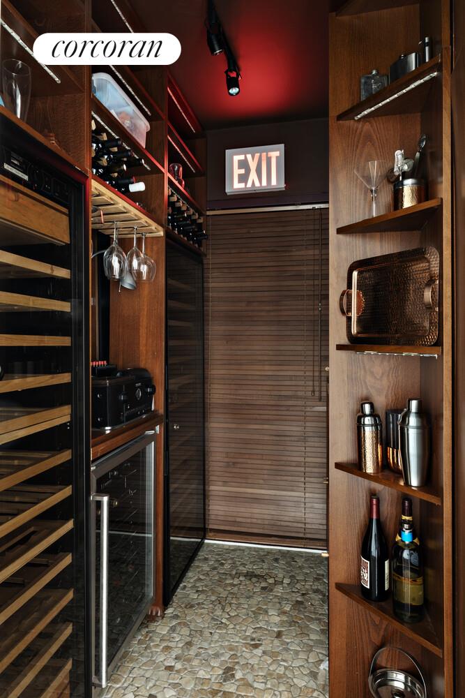From the moment the keyed elevator opens directly into the residence, the sense of volume and tranquility is undeniable. The great room sets an elegant tone with sweeping proportions, two distinct seating areas for both intimate gatherings and grand entertaining, and a striking gas fireplace wrapped in slab marble as its sculptural centerpiece. A dedicated dining area flows seamlessly from the living space and sits across from the temperature-controlled wine cellar, while the gourmet kitchen is outfitted with Miele and Viking appliances, a breakfast bar, and a separate pantry for maximum functionality.