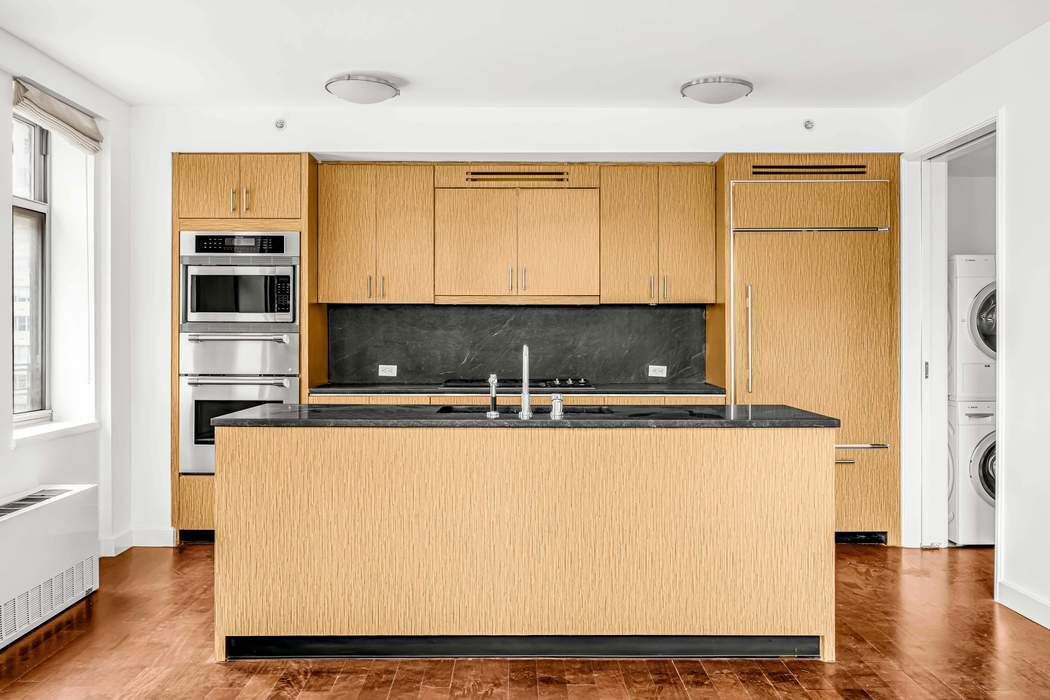 Perched on a high floor, this approx. 2,000-square-foot home features oversized corner windows, rich hardwood floors, and views of Central Park in the distance. The formal entry leads into a loft-like entertaining space with a spacious dining area and a sleek, open kitchen outfitted with premium appliances and stone finishes.