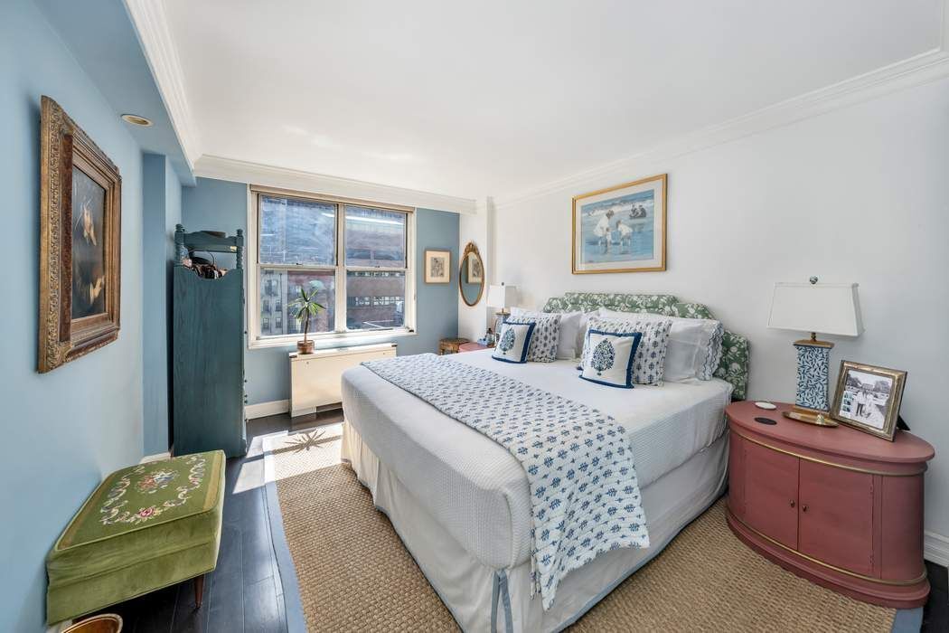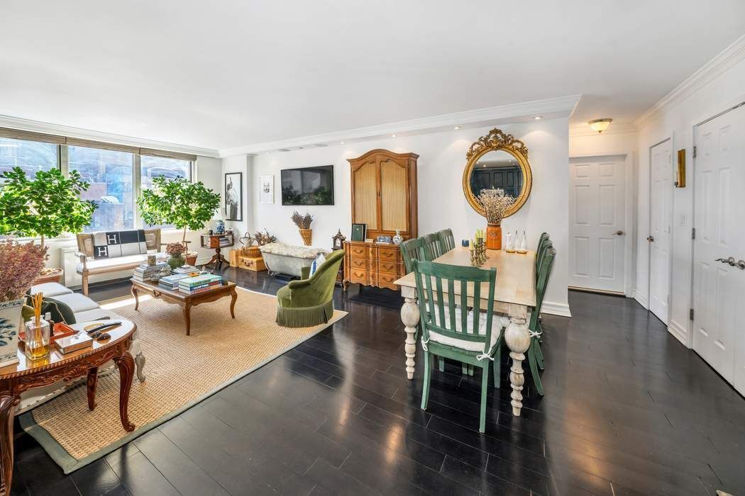Bright, Bold, and Beautiful. Welcome to this elegant two-bedroom home, where timeless design meets modern comfort. Bathed in southern light and overlooking beautiful, tree-lined 74th Street, the living and dining area beckons you with a gracious, open layout and an elevated sense of space. Sophisticated finishes include beautiful moldings, rich hardwood flooring, recessed lighting, and large windows with fitted custom Hunter Douglas window treatments. Made for entertaining, the kitchen has been thoughtfully expanded to provide both function and flow, and is outfitted with custom dark wood cabinetry, granite countertops, and top-tier Viking appliances - including a six-burner stove and wine cooler. The primary bedroom, located at the opposite end of the apartment is flooded with sun and comes with a large walk-in closet. A sunny second bedroom currently serves as the home office and is conveniently located off of the living area. A half-bath can be added pending Board approval. HVAC units are installed in every room. The Mayfair includes a 24-hour doorman, live-in super, garage, laundry on every floor, bike room, excellent closets, and additional storage for a fee. The location is superb—prime Upper East Side—three blocks from 77th Street train station; two blocks from the Q train. Walking distance to Central Park. The building permits pied-à-terre ownership, gifting, guarantors, co-purchasing, and allows up to 65% financing. Pets are welcome. No subletting is allowed.