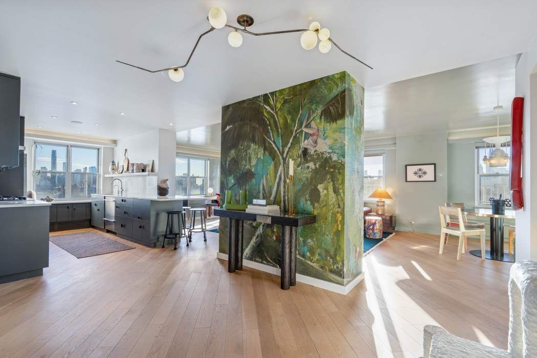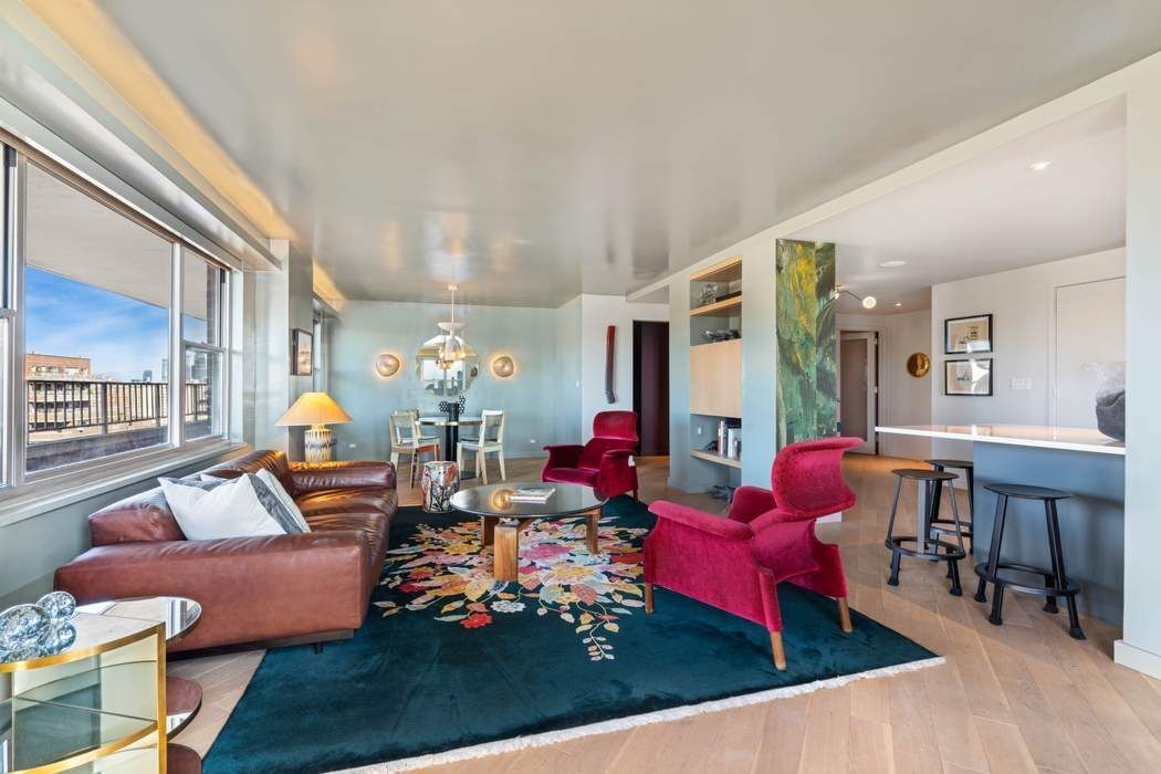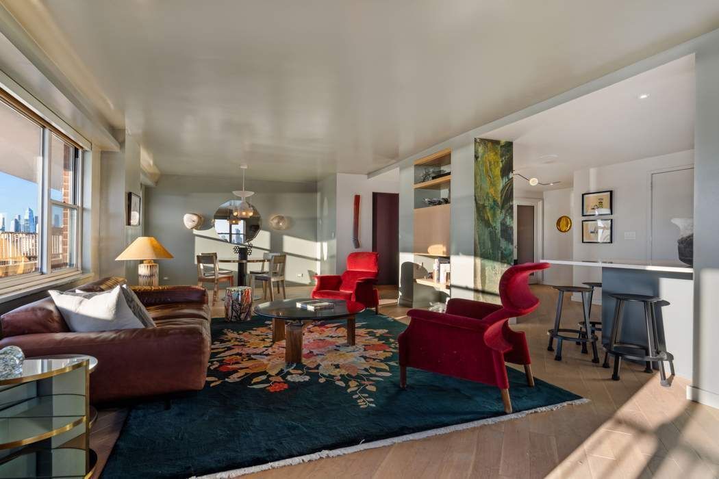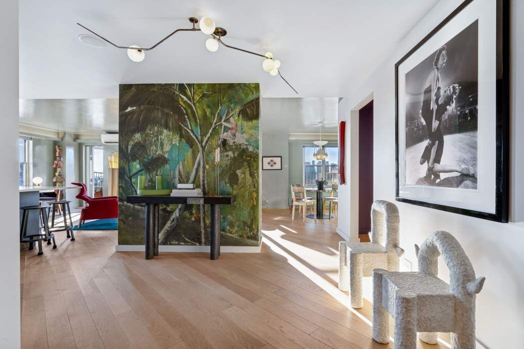 From the moment you enter, you are greeted by Calico wallcovering, setting a tone of refined artistry and quiet sophistication. The sun-flooded living room, bathed in southwest light, flows effortlessly onto an oversized private terrace—a rare urban retreat offering spectacular panoramic views, breathtaking sunsets, and a front-row seat to the July 4th fireworks. Finished with custom terrazzo flooring, this exceptional outdoor space is perfect for creating a lush garden oasis, ideal for both intimate gatherings and relaxed evenings under the city lights.