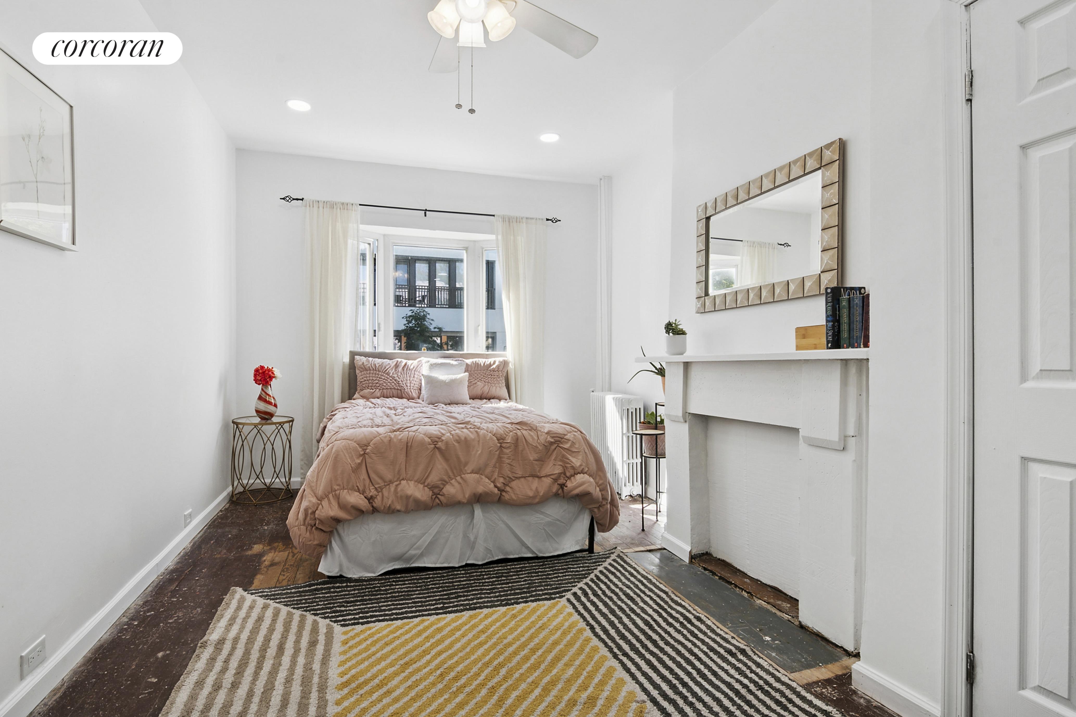 The Top-Floor Rental The top-floor two-bedroom, one-bath apartment provides excellent income potential. The primary bedroom includes a flex space perfect for an office, guest room, oversized closet, or home gym, while the second bedroom sits on the opposite end for added privacy. The cozy living room flows into a large eat-in kitchen with stainless steel appliances, and the modern tiled bathroom features ample storage and a stall shower.