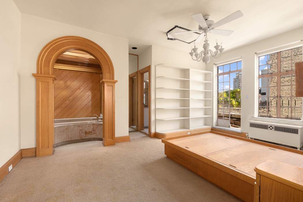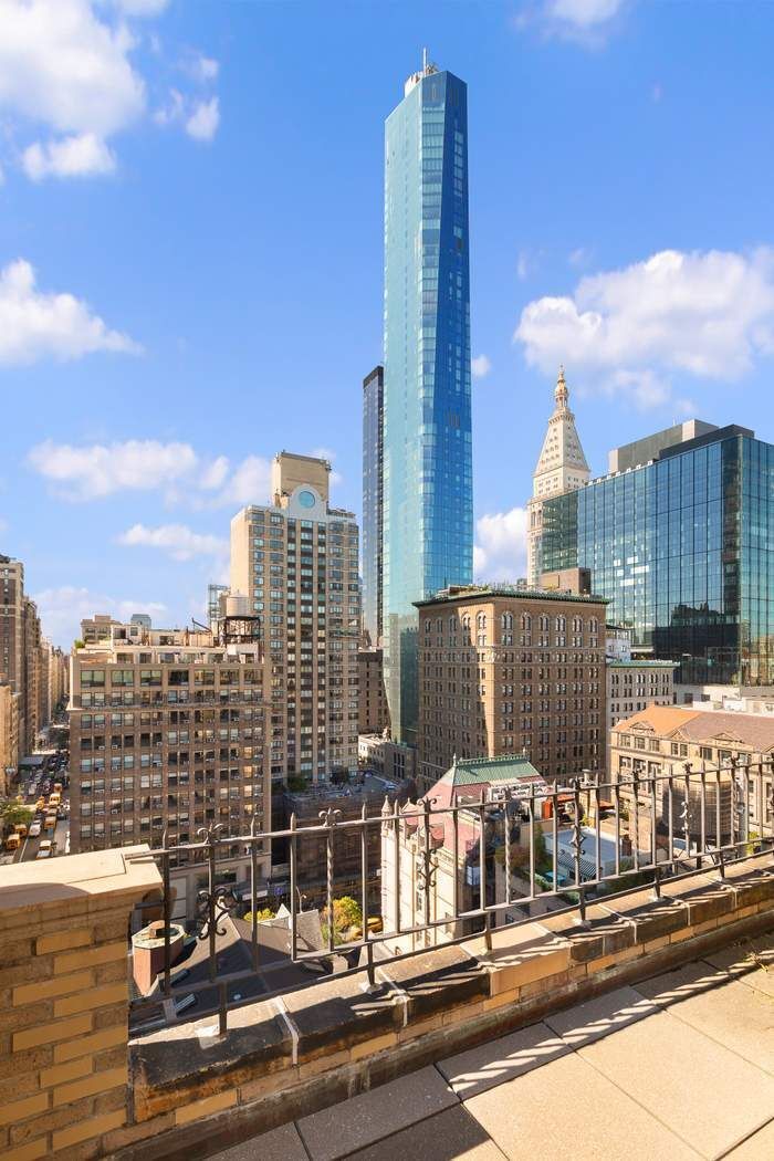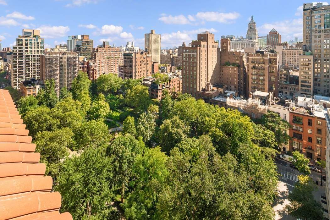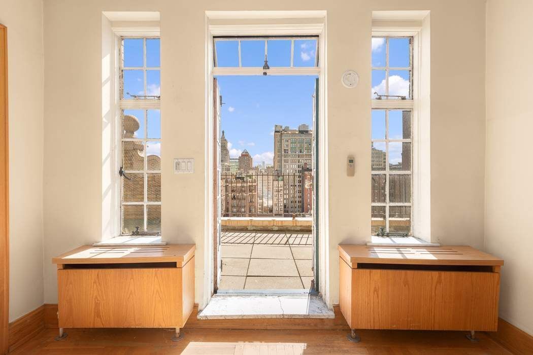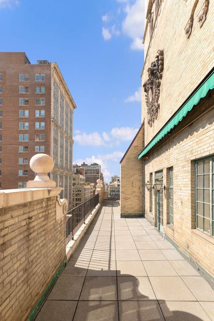 This offering represents the rare opportunity to acquire one of Gramercy Park’s most iconic prewar penthouses. This diamond in the rough offers an astute buyer incredible bones and limitless potential. Upon entering spectacular light soaring ceilings, and walls of steel casement windows framing picture perfect views set the tone of this truly one-of-a-kind home. The 59’ wide south-facing terrace is the centerpiece with nearly 800 square feet of outdoor space. A plethora of rich architectural details including ornamental finials, terracotta and red-tiled gable roofs as well as stunning views of Gramercy Park and beyond provide the ideal palette for this unique perch hovering 18 floors over the city. Adjacent East and West facing terraces provide open views of Manhattan and are directly accessed from every room via steel casement French doors.