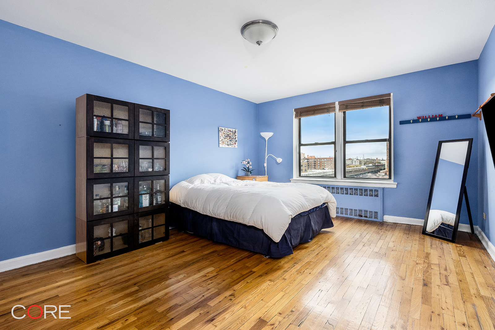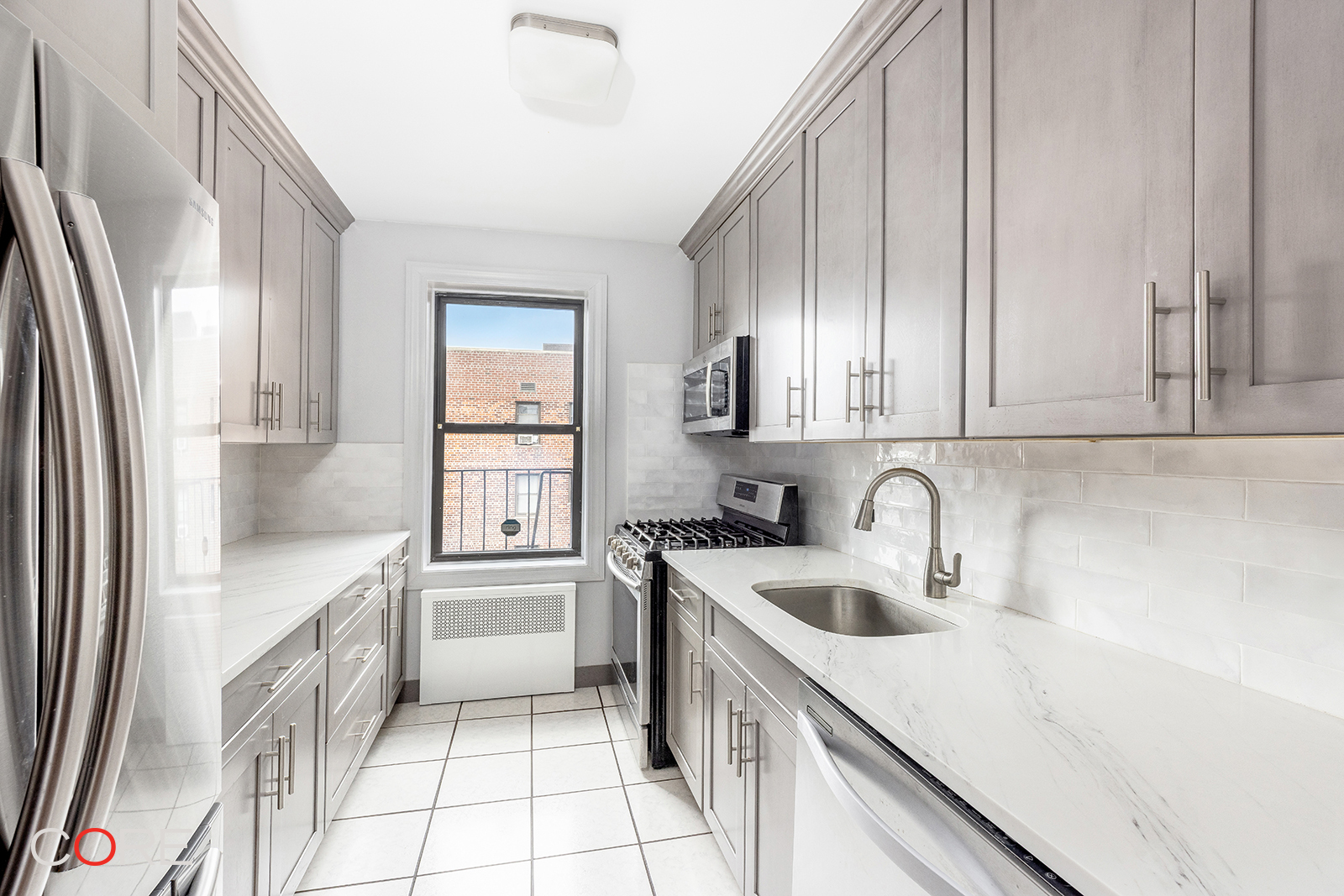 One of the most unique apartments to come to market in Jackson Heights. This massive top-floor three-bed two-bath was created through a combination of two adjoining apartments, and it offers thoughtful renovations and clear views of the Manhattan skyline. Enter through a gracious foyer, which leads to the living room with a dining alcove and an adjacent double-galley kitchen. Newly renovated, the kitchen offers custom shaker cabinets, stone counters, tile backsplash, and a full line of quality stainless steel appliances, complete with a dishwasher. Just past the living room, a corridor leads to two gracious bedrooms and a well-appointed full bath. The show stopper is the massive primary bedroom with its brand new spa-like bath with quality fixtures and finishes. There are ample closets, well-preserved original hardwood floors, and an abundance of natural light from three exposures. Conveniently located on a serene tree-lined block, Monticello Gardens is a 167-unit, six-story, elevator building that was erected in 1951. It offers waitlist parking, laundry facilities, bicycle storage, and a live-in super. The building has no flip tax and permits pets, as well as sublets, with board approval as per house rules. It is within a short distance of all local amenities and transportation. Showings are by appointment. Call to schedule!