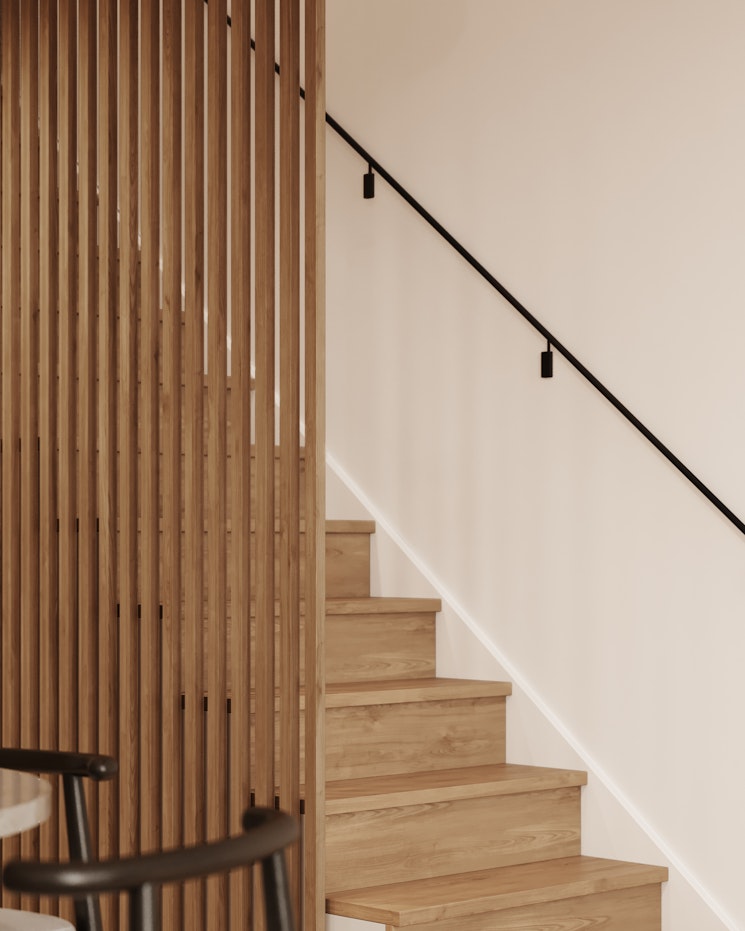 Upon entering the main level, the duplex reveals its impressive scale, complemented by European white oak flooring heightening its airy proportions.