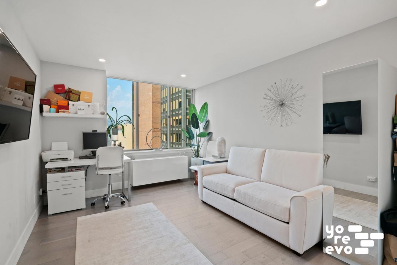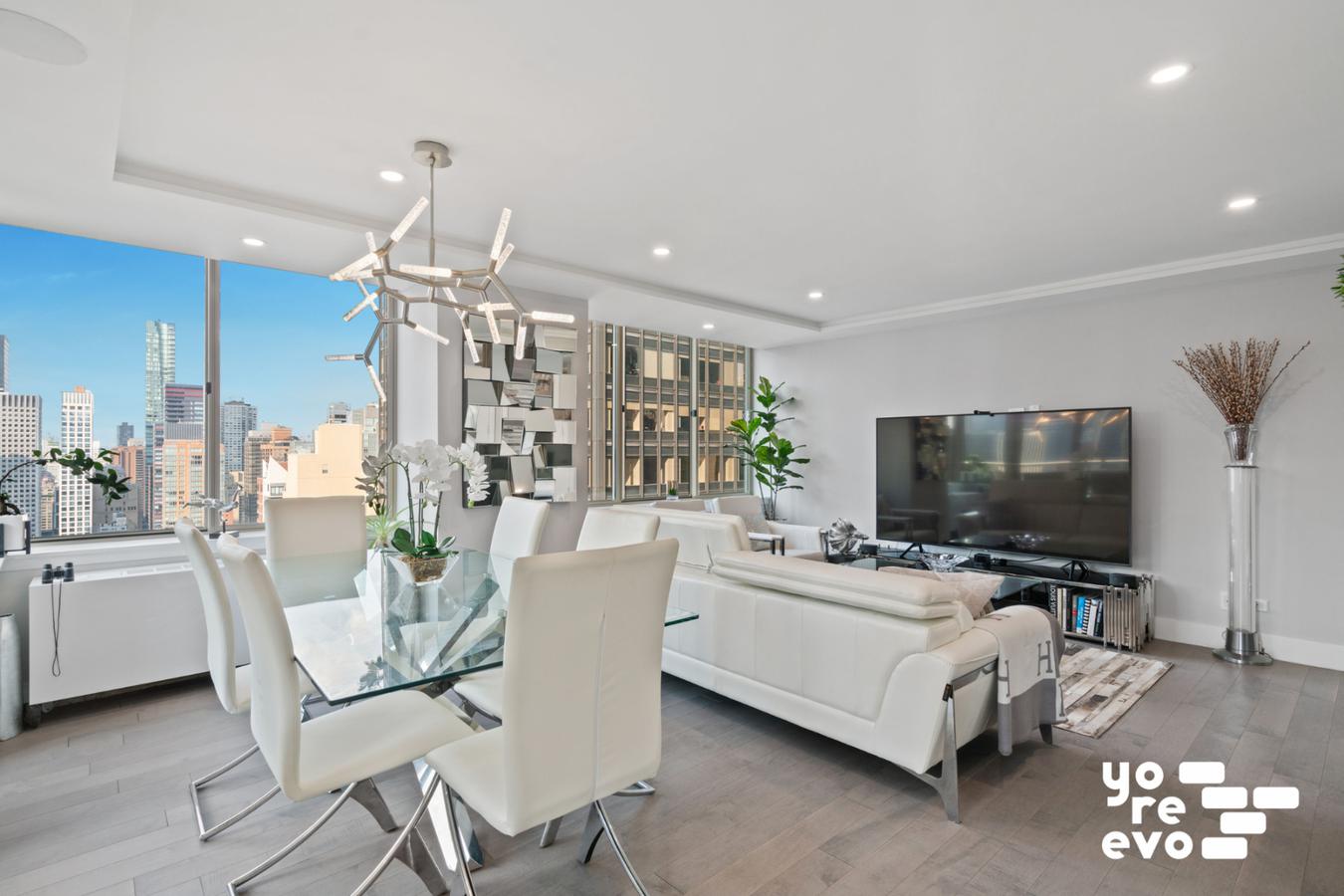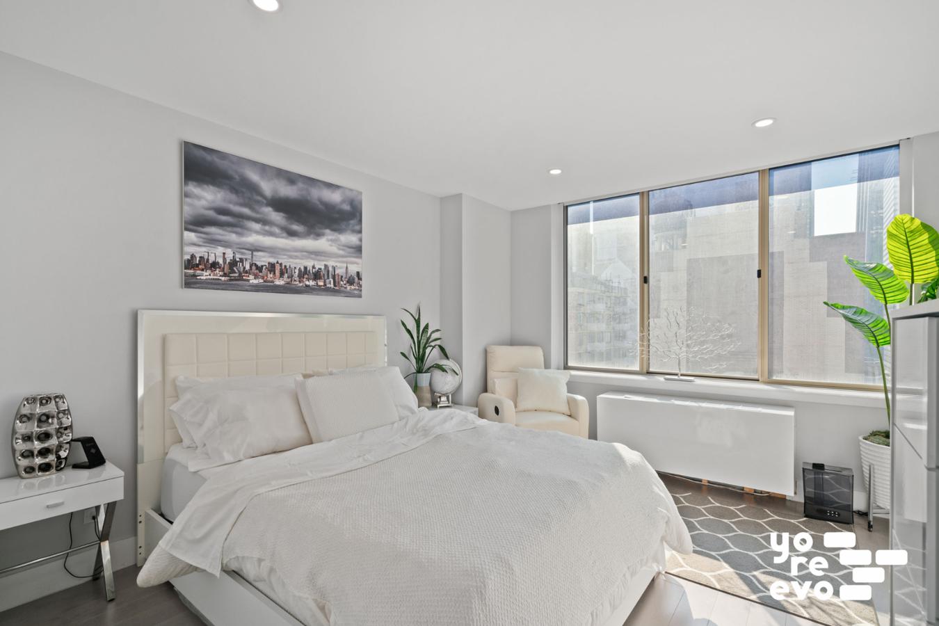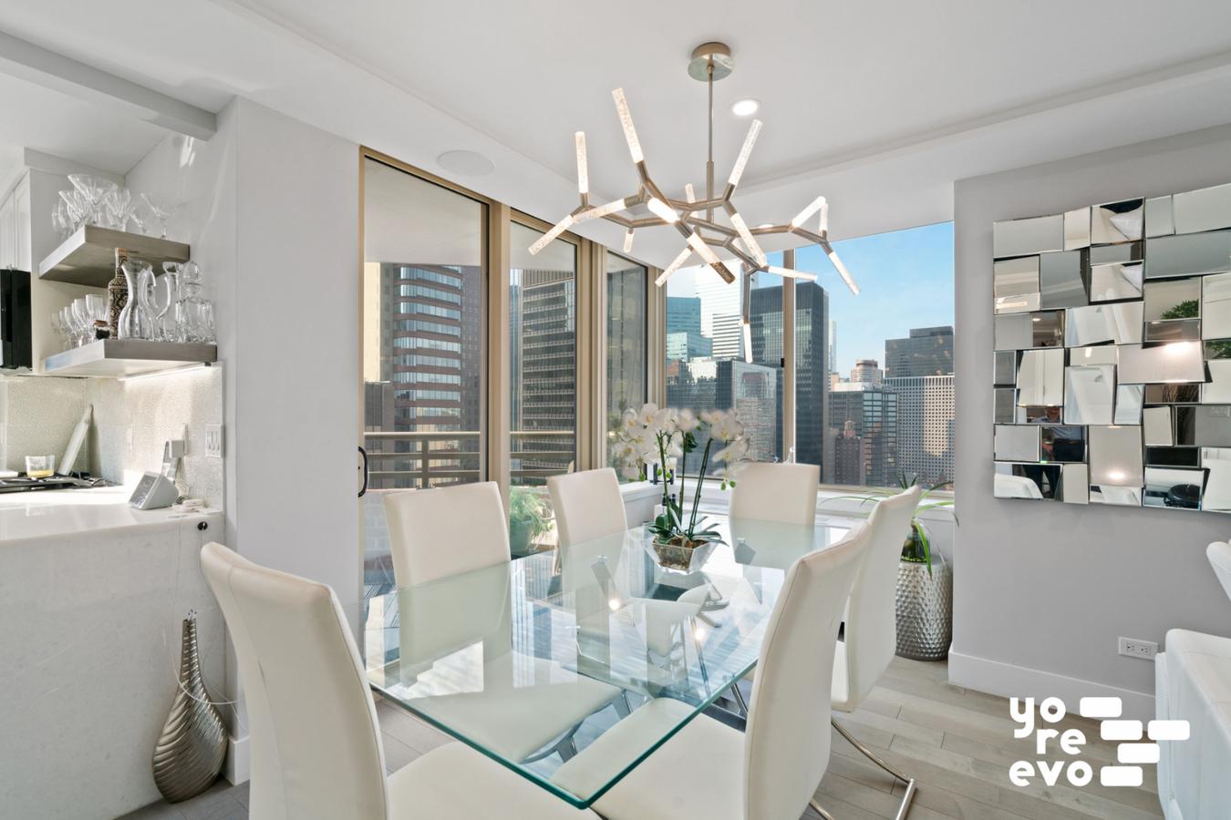The apartment features open northern views and a balcony which is perfect for taking in sunsets over Midtown.
