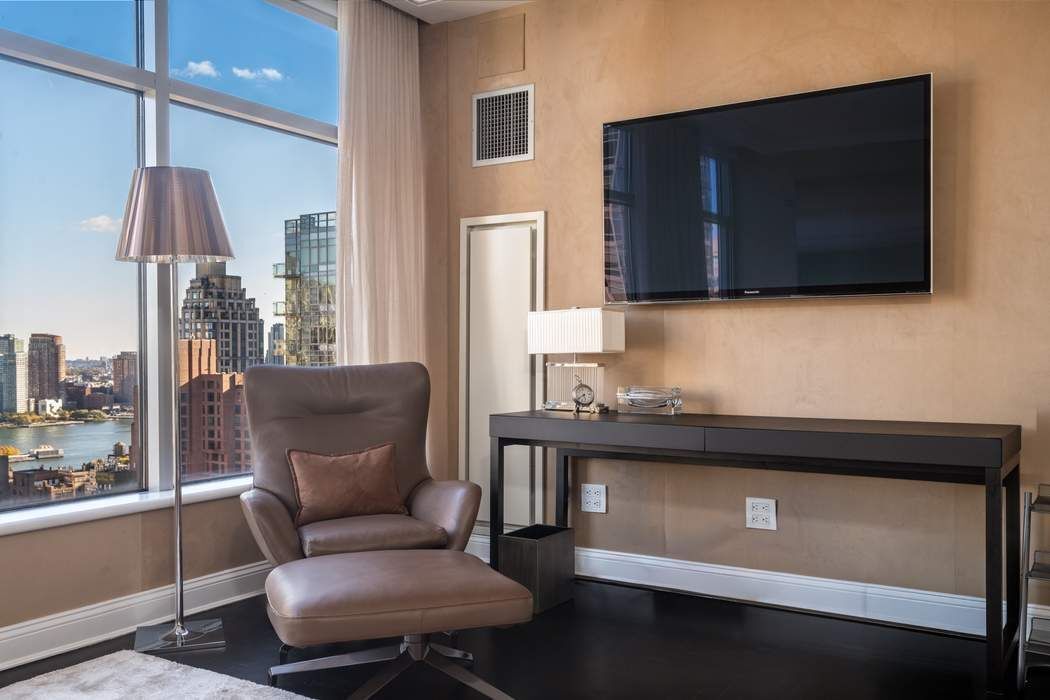Residence 29D represents the rare combination of design, light, and location—a turnkey home in one of Midtown East’s most desirable full-service buildings. Every inch of this immaculate property has been completely rebuilt from the studs up, resulting in a home that feels brand new, yet timelessly sophisticated. This 1,700-square-foot, 3-bed, 3-bath unit seamlessly blends high design with functional luxury, showcasing a level of craftsmanship rarely seen at this scale. The expansive living and dining area frames breathtaking city and East River views through a full wall of windows, bathing the home in natural light from sunrise to sunset. The chef’s kitchen is as beautiful as it is practical, featuring custom cabinetry, elegant countertops, and top-of-theline appliances perfectly designed for both entertaining and everyday living. Each bedroom is thoughtfully proportioned, offering versatility and comfort. The primary suite serves as a private retreat, complete with a dressing room, a spa-caliber en-suite bathroom with heated towel warmers, and exquisite stone finishes. A second bedroom includes its own bath, while the third is ideal for guests or a home office. Throughout the home, Italian-built custom millwork has been integrated with remarkable precision, concealing ample storage and even transformable sleeping spaces that appear only when needed—an ingenious design choice that adds functionality without compromising the apartment’s refined aesthetic. Residents of The Mondrian Condominium enjoy a full-service lifestyle with 24-hour doorman and concierge, on-site management, and direct access to Equinox Fitness Club through the building’s lobby. Additional amenities include a wraparound sun terrace with grill, playroom, laundry service, and proximity to multiple subway lines (E, M, 6, N, Q, R, W), world-class dining, and the city’s best shopping.