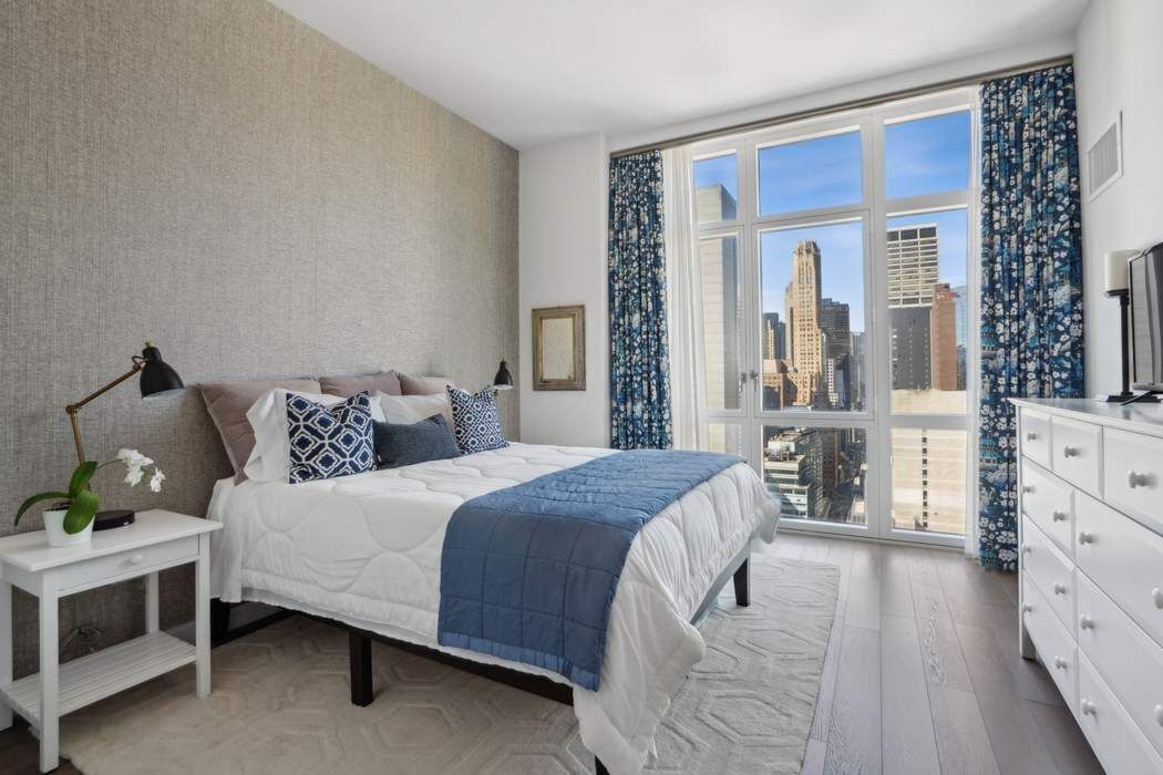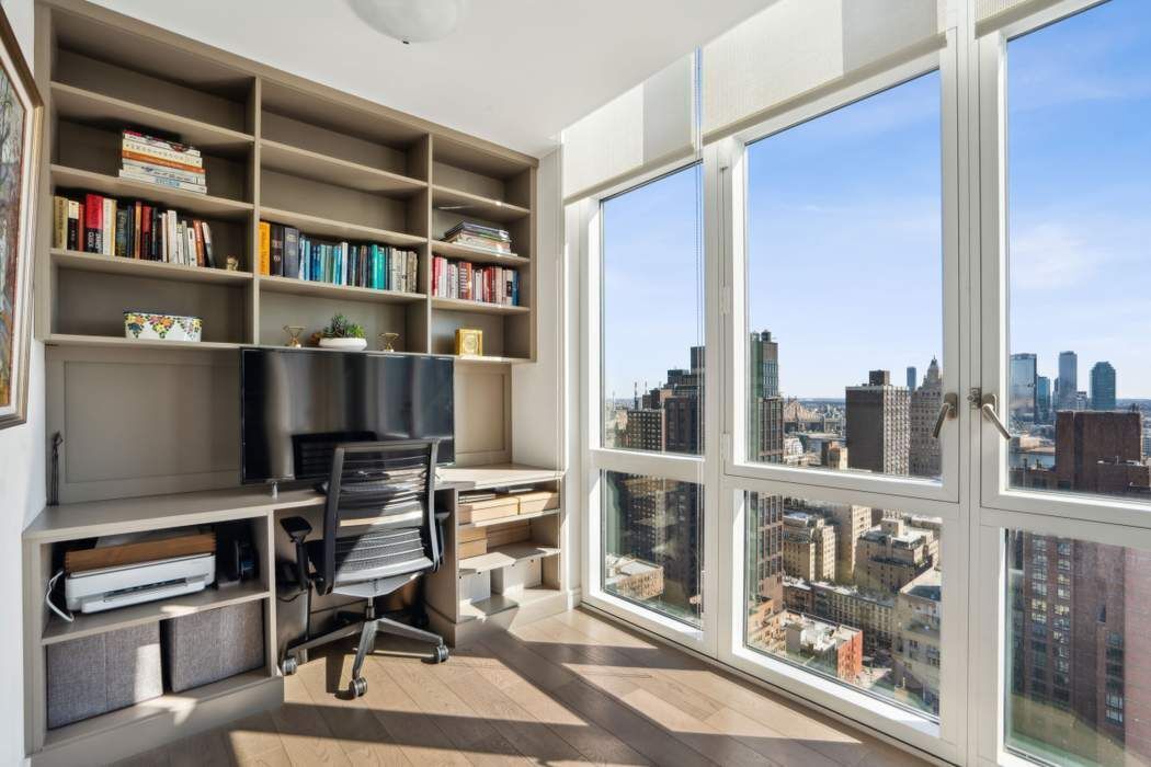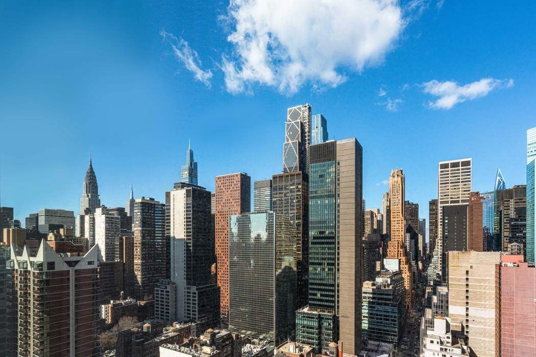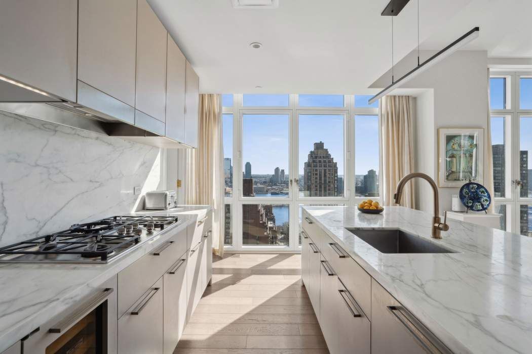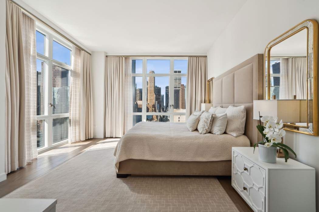 Just Listed! This impeccable 3-bedroom, 3.5-bath residence soars above Midtown East, offering breathtaking views in three directions. Marvel at iconic sights like the Empire State and Chrysler buildings to the south, Midtown’s skyline to the west, and expansive river vistas to the east. The windowed, open custom Poliform kitchen, featuring Calacatta Gold marble countertops and Miele and Subzero appliances, seamlessly flows into a sun-drenched corner living and dining room, highlighted by ceilings over 10 feet high and floor-to-ceiling windows. The apartment's well-designed layout ensures effortless living and entertaining. The private corner primary suite is a luxurious retreat, complete with an oversized custom outfitted walk-in closet, built-ins and a spa-like bathroom adorned with white statuary marble, bronze fixtures, a deep soaking tub, and a separate glass-enclosed shower. Two additional bedrooms each offer ensuite baths, styled with glass wall tiles and bronze Kohler fixtures. Additional spaces include a bright study off the kitchen—perfect as a guest room—a walk-in laundry room with a sink, and an elegant powder room. Throughout the home, smoked 6-inch-wide oak flooring adds a touch of understated sophistication and modern flair. The Halcyon, a newly built 33-story luxury condominium in the heart of Manhattan designed by Architectural Digest 100 Architect, S. Russell Groves, combines contemporary glass architecture with warm materials like limestone and bronze metalwork. Residents enjoy a range of world-class amenities: 24 hour- doorman and concierge services, a 52-foot heated indoor pool, a light-filled fitness center, steam and sauna rooms, a private treatment room, a children’s playroom, a golf simulator, a media lounge with a catering kitchen, a library, a sky lounge, and a serene courtyard garden. Experience elevated living at its finest!