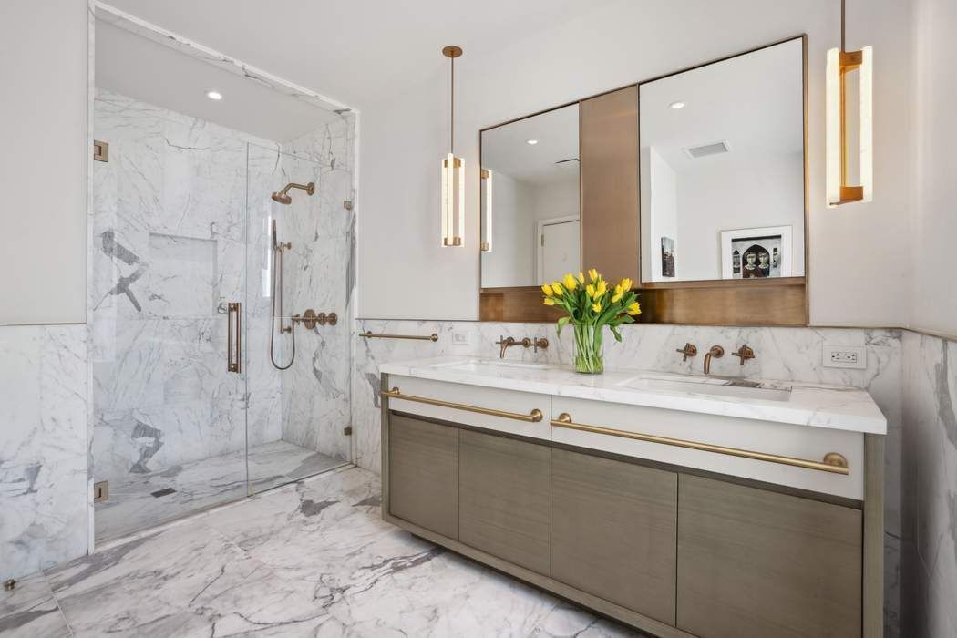 • Just Listed! This impeccable 3-bedroom, 3.5-bath residence soars above Midtown East, offering breathtaking views in three directions. Marvel at iconic sights like the Empire State and Chrysler buildings to the south, Midtown’s skyline to the west, and expansive river vistas to the east. The windowed, open custom Poliform kitchen, featuring Calacatta Gold marble countertops and Miele and Subzero appliances, seamlessly flows into a sun-drenched corner living and dining room, highlighted by ceilings over 10 feet high and floor-to-ceiling windows. The apartment's well-designed layout ensures effortless living and entertaining. The private corner primary suite is a luxurious retreat, complete with an oversized custom outfitted walk-in closet, built-ins and a spa-like bathroom adorned with white statuary marble, bronze fixtures, a deep soaking tub, and a separate glass-enclosed shower. Two additional bedrooms each offer ensuite baths, styled with glass wall tiles and bronze Kohler fixtures. Additional spaces include a bright study off the kitchen—perfect as a guest room—a walk-in laundry room with a sink, and an elegant powder room. Throughout the home, smoked 6-inch-wide oak flooring adds a touch of understated sophistication and modern flair. The Halcyon, a newly built 33-story luxury condominium in the heart of Manhattan designed by Architectural Digest 100 Architect, S. Russell Groves, combines contemporary glass architecture with warm materials like limestone and bronze metalwork. Residents enjoy a range of world-class amenities: 24 hour- doorman and concierge services, a 52-foot heated indoor pool, a light-filled fitness center, steam and sauna rooms, a private treatment room, a children’s playroom, a golf simulator, a media lounge with a catering kitchen, a library, a sky lounge, and a serene courtyard garden. Experience elevated living at its finest!