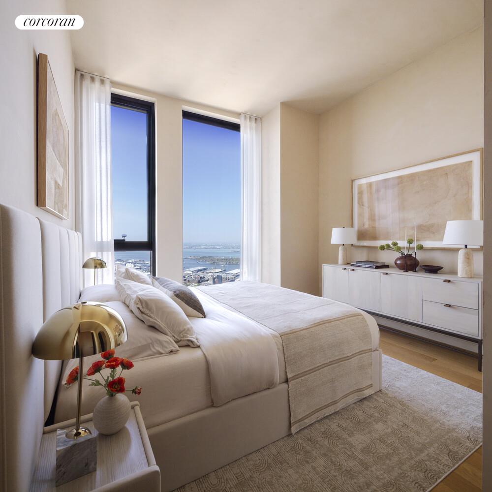 Designed by award-winning SHoP Architects, residence 76A is a generously proportioned 1,238 sf southwest-facing two bedroom, 2 bathroom home with ceiling heights up to 11 feet. Expansive floor to ceiling windows let in an abundance of natural light, framing dynamic views of the Brooklyn Bridge, Manhattan skyline and New York Harbor.