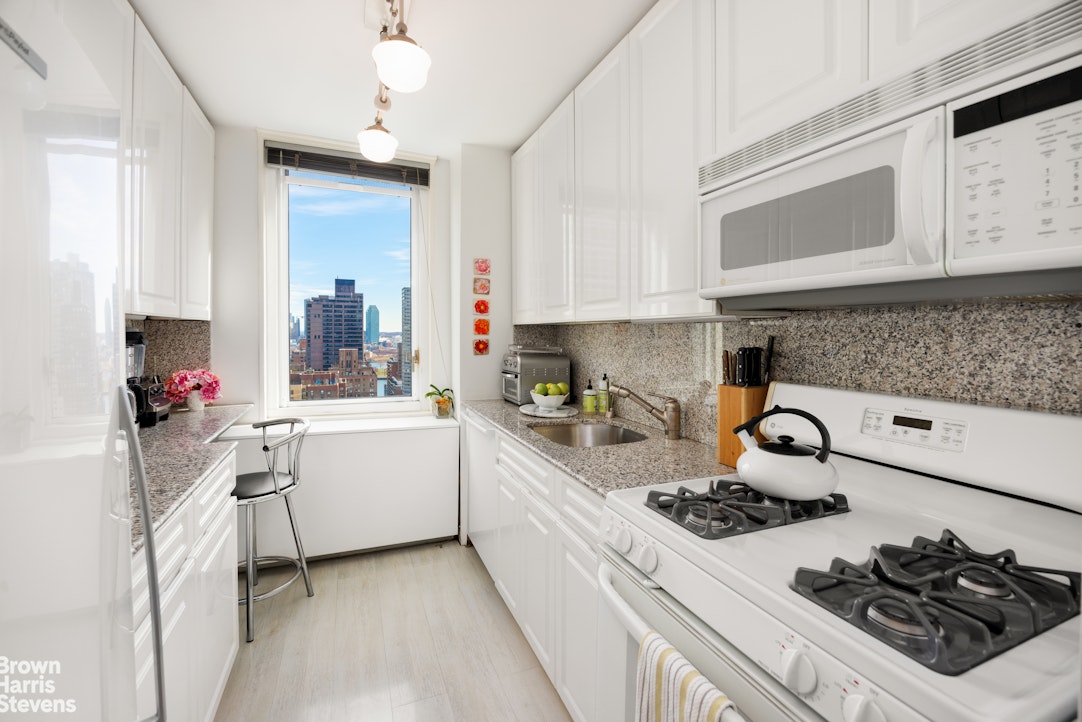 • Welcome to apartment 27M, a spacious and bright corner 1-bedroom in the heart of Midtown East, offering gorgeous open views to the South and East. This unique line is one of the largest 1-bedroom apartments in the building and features a renovated, windowed kitchen and bathroom!