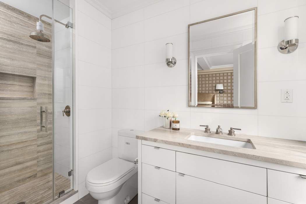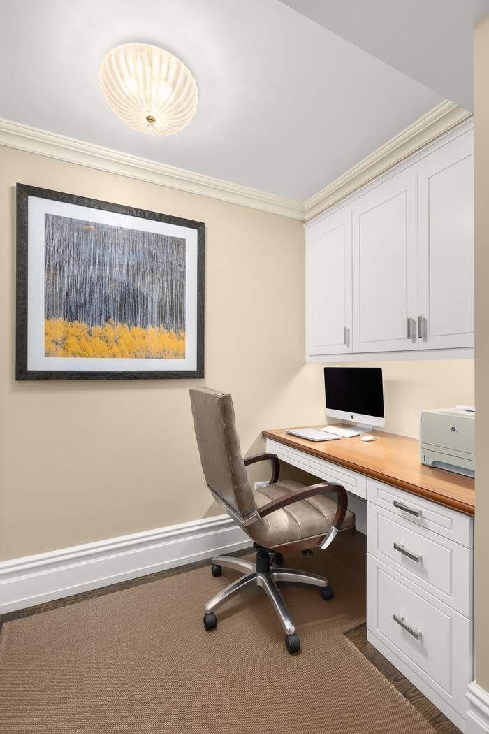 This sun-flooded, south-facing pre-war condominium offers 1,582 SF of mint renovated space, including two bedrooms, two full bathrooms, and a separate home office. High, beamed ceilings, classic moldings, oak floors, large new windows, and central air conditioning create a cohesive blend of pre-war character and modern comfort. The windowed kitchen features white glass countertops, a marble backsplash, abundant storage, and premium appliances including a Bertazzoni gas range, Miele refrigerator, and Fisher & Paykel dishwasher. The plan is open and casual, fitting for today’s lifestyle with a central den and dining area. The south-facing primary includes two closets—one a walk-in—and a windowed en-suite bath with a rain shower. The second bedroom faces north and has an adjacent full bath finished in marble with a deep-soaking tub. A separate home office is a convenient and desirable feature. 165 West 91st Street, The Mirabeau, is a full-service pre-war condo at the corner of 91st Street and Amsterdam Avenue. Built in 1926 and reimagined in 2013 by Kinlin-Rutherfurd Architects, the building offers a landscaped roof deck, fitness room, playroom, bike room, 24-hour doorman, live-in resident manager, handyman and porter. Neighborhood highlights include Barney Greengrass, Whole Foods, dozens of great restaurants and easy access to the 1/2/3 and B/C subway lines—and only two blocks from Central Park. Please note that the monthly real estate taxes shown reflect a 17.5% abatement which applies to ownership as a primary resident. Otherwise the monthly real estate taxes are $1,456 a month.