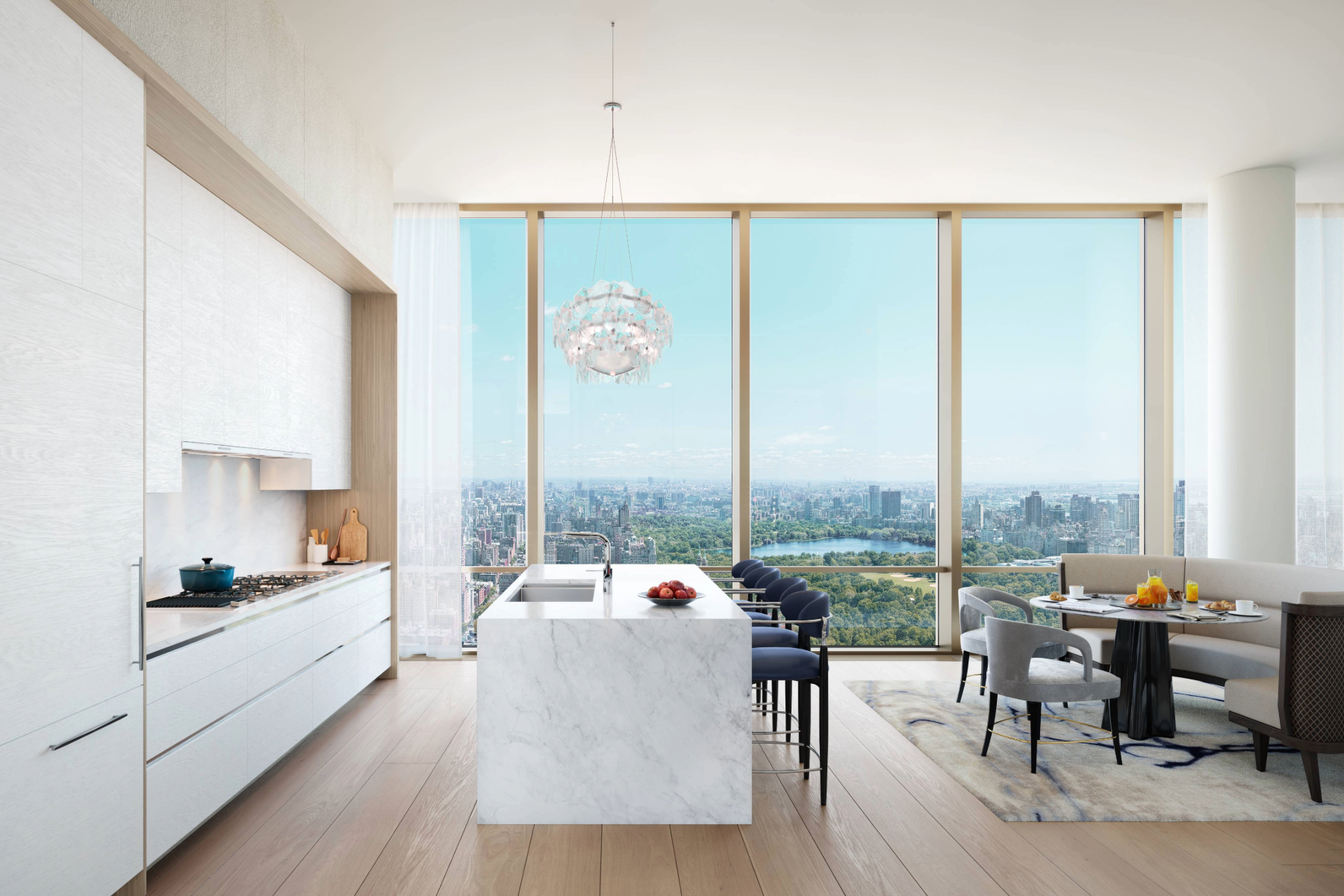 Tower residence 53S is a gracious 4,982 square-foot, half floor home with, 5 bedrooms, 6.5 bathrooms and a spectacular private loggia overlooking Central Park and Midtown Manhattan. Walls of glass frame spectacular views of Central Park, The Hudson River, and the NYC skyline. This grand residence features ceiling heights up to 14’6” and exceptional finishes throughout. The Tower at 50 West66th Street, imagined by global interior design firm AB Concept, sets the stage for open views of, Central Park, the Manhattan Skyline and Hudson River. With floor-to-ceiling windows, soaring ceiling heights and the finest finishes, these residences elevate New York City living. Top-of-the-line finishes include Smallbone of Devizes custom-designed and crafted kitchens, Miele and Sub-Zero appliances, 12-inch oak flooring, marble bathrooms, and generous closet space. Available for immediate Occupancy. 50 West 66th Street, is one of the tallest and most important residential buildings on the Upper West Side and has transformed the New York City Skyline. Extell's newest tower will have 121 ultra-luxury homes ranging from two bedrooms to full floors. The building boasts 50,000 square feet of amenity space including both an indoor and outdoor pool, squash court, full-sized basketball and pickleball court, state-of-the-art fitness center, Sky Lounge for entertaining and a private porte cochère. The complete offering terms are in an offering plan available from Sponsor. File No. CD-18 0494. Equal Housing Opportunity.