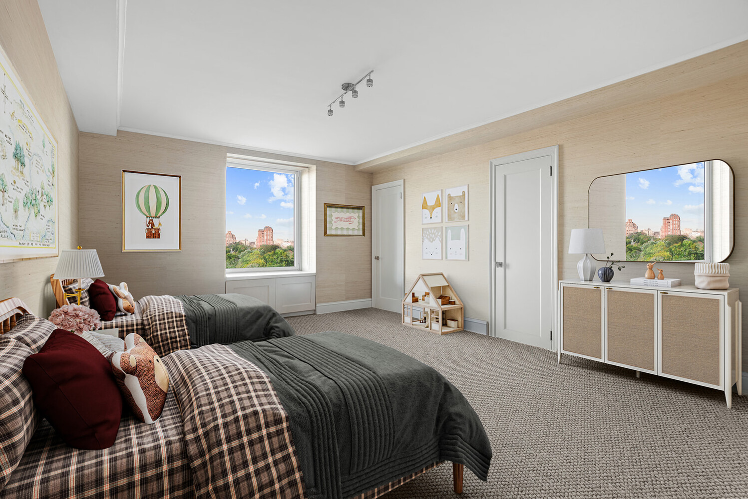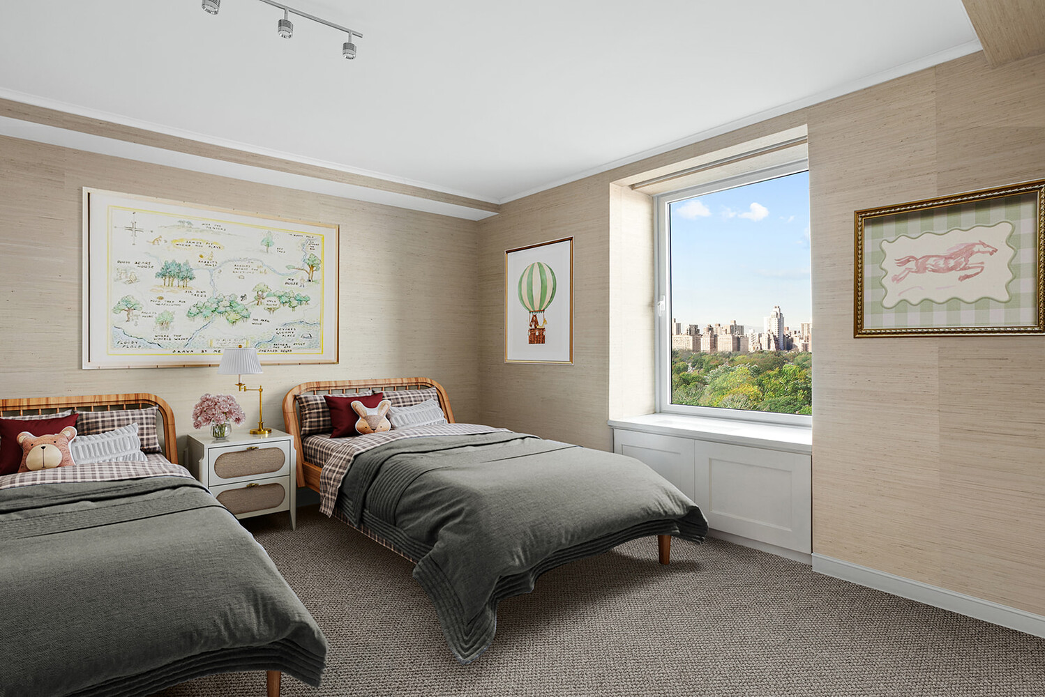 With more than 83 feet of windows facing Central Park, the home is bathed in natural light. All windows are state-of-the-art, noise-canceling, UV- and temperature-insulated double-pane glass. The windowed kitchen is outfitted with top-tier appliances-Wolf, Miele, and Sub-Zero-and custom cabinetry, while the newly completed bathrooms feature the finest fixtures by Waterworks, Porcher, Kallista, and Toto.