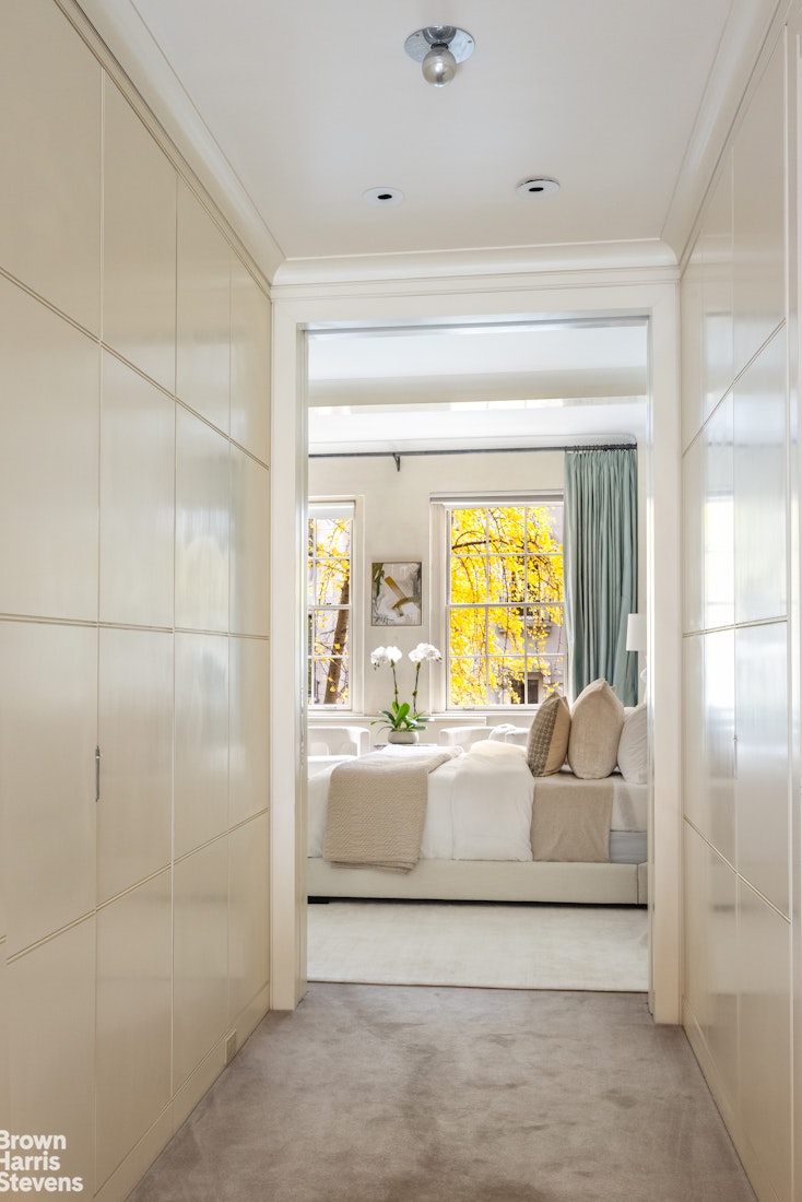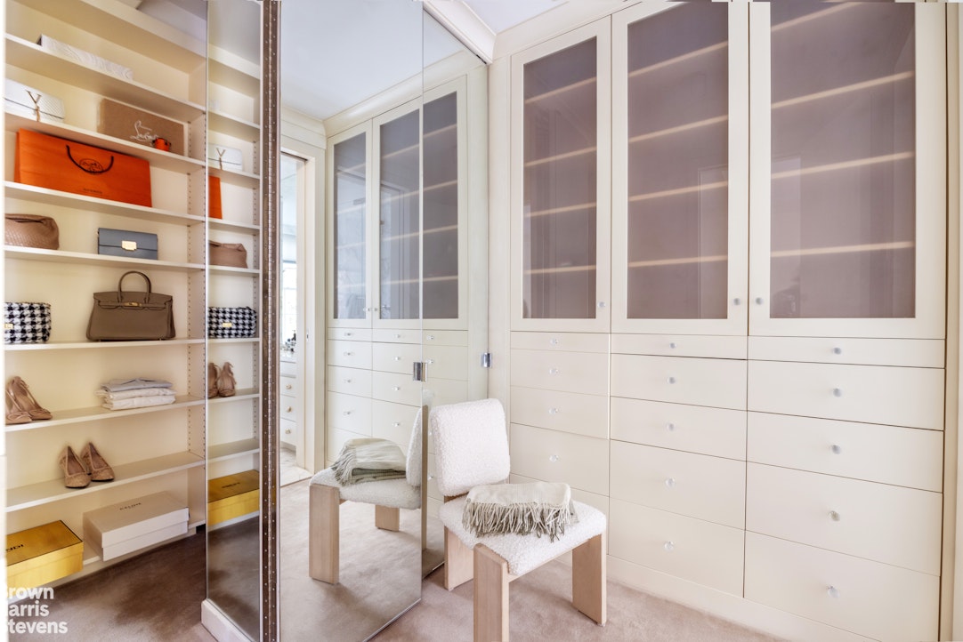 The adjoining Dining Room also faces leafy 75th Street, while the Kitchen includes a bright Breakfast Room  with Miele washer & dryer.  A staff Bedroom with en-suite Bath, a coat closet, and the staircase to the upper level complete the main floor.