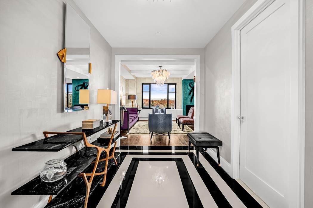 A gracious foyer opens to an impressive gallery that immediately frames the park’s trees, setting a serene tone the moment you enter. The expansive living and dining rooms feature high ceilings and two oversized picture windows that capture breathtaking panoramas of Central Park. The generous proportions accommodate both a dining for large parties and an expansive seating area,