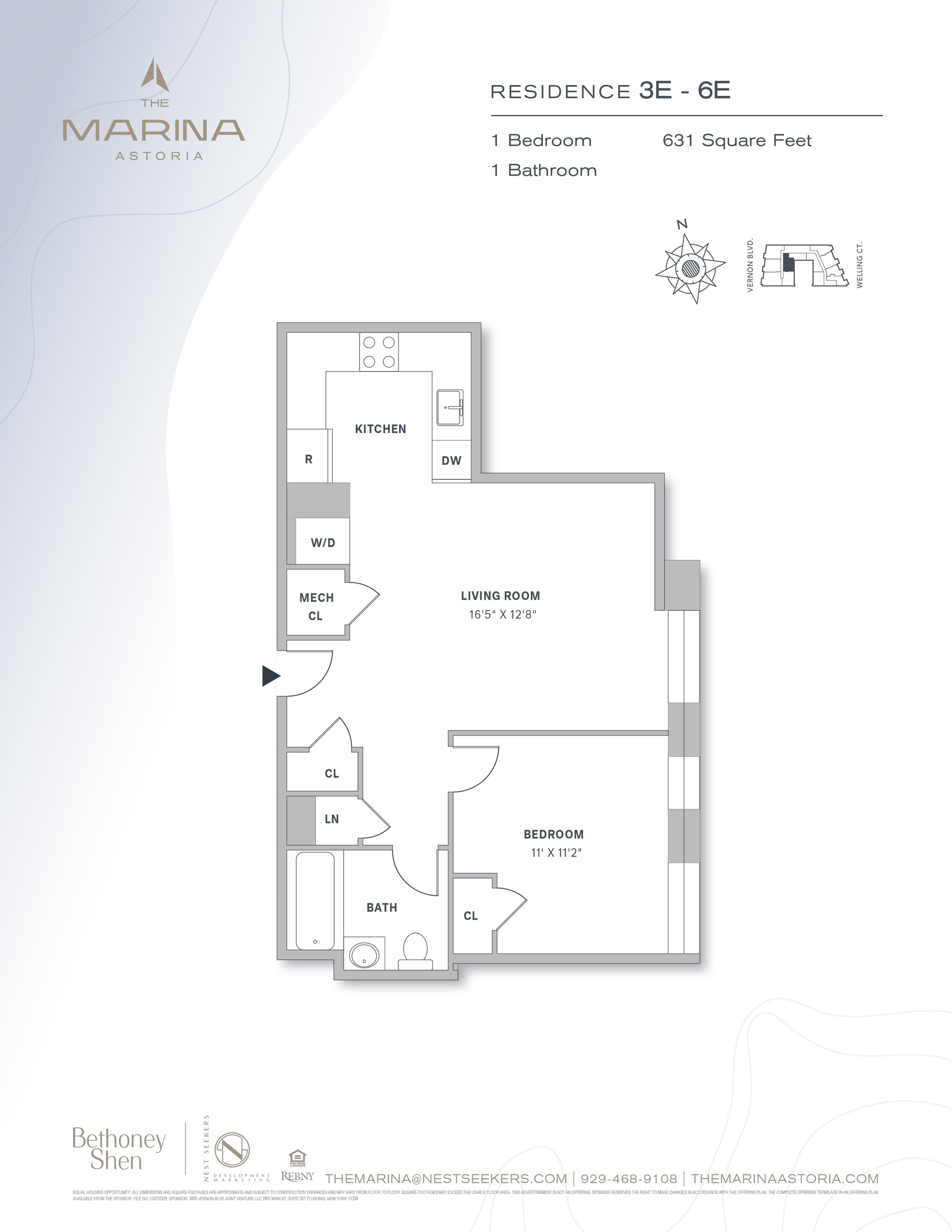Waterfront Luxury at Marina Astoria Boasting chic finishes and close proximity to public transportation, lush parks, and dozens of restaurants, cafes, bars, and shops, this brand new 1-bedroom, 1-bathroom home is a portrait of contemporary city living. Floor-to-ceiling triple-pane windows let in an abundance of natural light while keeping interiors quiet and temperature-stable. Wide plank oak floors run throughout an open-concept floorplan that maximizes square footage. Solid core doors feature smart lock hardware, and Nest-controlled heating and cooling offers precision temperature control and optimizes energy efficiency. There is also a convenient in-unit washer/dryer. The home begins with an open plan living room, dining room, and kitchen saturated with southern light. The kitchen is equipped with [an eat-in peninsula], chic quartz countertops and backsplash, custom soft-close cabinets and drawers, a sleek Grohe faucet, and high-end fully integrated appliances from Blomberg. The bright bedroom has a built-in reach-in closet and easy access to a pristine full bathroom with a custom oak vanity, a Duravit wall-mounted toilet, and polished chrome Toto fixtures. The Marina Astoria is a brand new luxury waterfront condominium nestled in one of the most culturally vibrant neighborhoods in the entire city. With incredible amenity spaces and quick access to Astoria’s main pedestrian strips, Marina Astoria offers residents a best-of-both-worlds living experience. The building has a landscaped courtyard, fitness center, library, pet spa, co-working space, meditation room, children’s playroom, and a furnished rooftop terrace with picturesque skyline views. There is also on-site parking, private storage, and a bicycle room. Broadway and 30th and 31st Avenues are thronged with eateries and nightlife options. Hallet’s Cove Beach, Socrates Sculpture Park, Rainey Park, and The Noguchi Museum are all just down the street, and the athletic fields and public pool in Astoria Park are a few blocks away. Public transportation options include the NYC Ferry and the N/W subway lines. Pets are welcome. The complete offering terms are in an offering plan available from the Sponsor. File No. CD21-0329. Sponsor: 3005 Vernon Blvd Joint Venture LLC, 3901 Main St, Suite 501 Flushing, New York 11354.