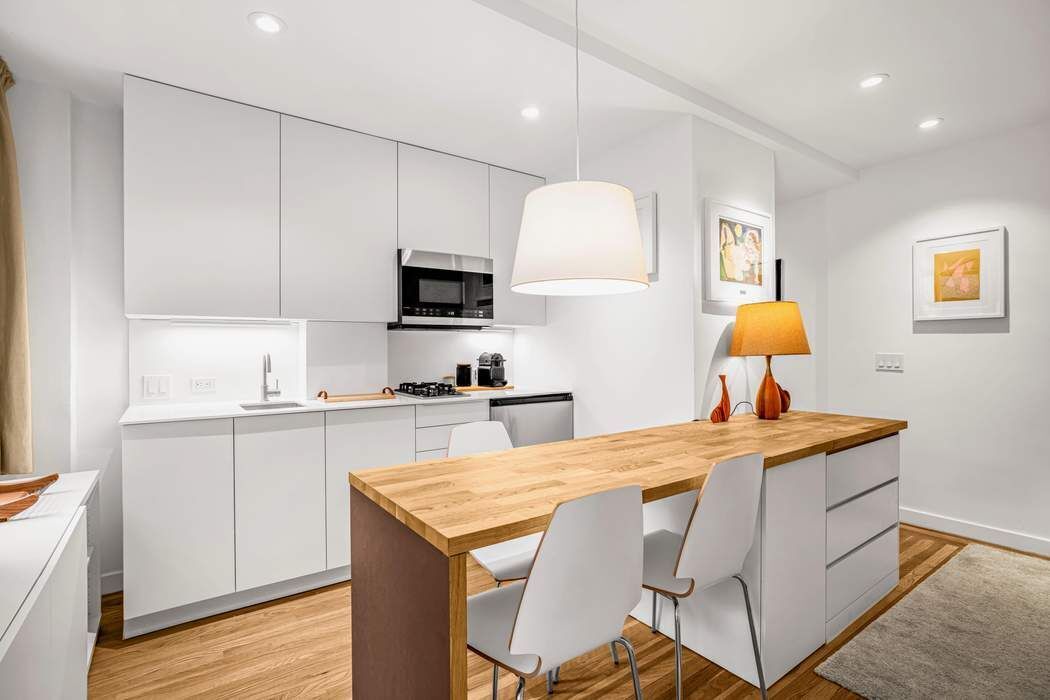 The Perfect Pied-a-Terre! Brand New Renovated Studio Apartment comes completely and stylishly furnished. Architect’s own in Sutton/Midtown-East supremely convenient location. Unlimited subletting after 2 years. North facing with lovely light during the day through new double-glazed windows providing quiet enjoyment in this multipurpose space. Maximum and intelligent use of space utilizes every inch of storage and livability. Currently outfitted with a queen-sized bed along with dedicated sitting/TV area and breakfast bar overlooking the windowed kitchen. Along the wall of windows is custom built-in storage complemented by two custom closets that elevate this home’s organization. Kitchen space is a visual delight that seamlessly provides nourishment to the senses. Large, sunny and furnished roof deck is easily accessible by elevator. 321 East 54th Street is a prewar coop that offers a part-time doorman (3-11, M-F), live in super, laundry, bike and building storage. The building permits unlimited subletting after two years of residence (subject to board approval). Sorry, no pets are permitted.